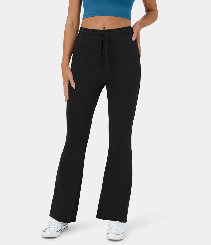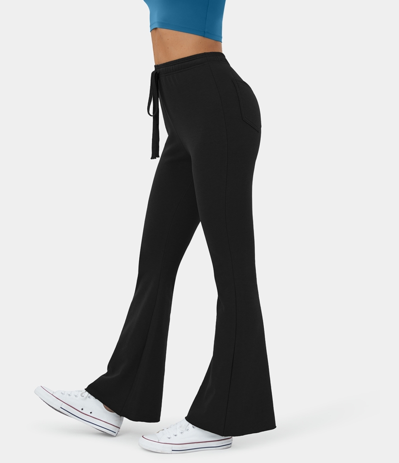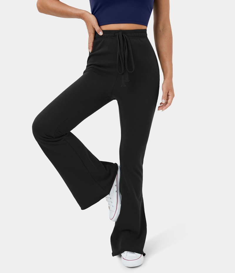 :: Halara High Waisted Drawstring Back Side Pocket Casual Flare Women's Pants Black | 120936-NJY