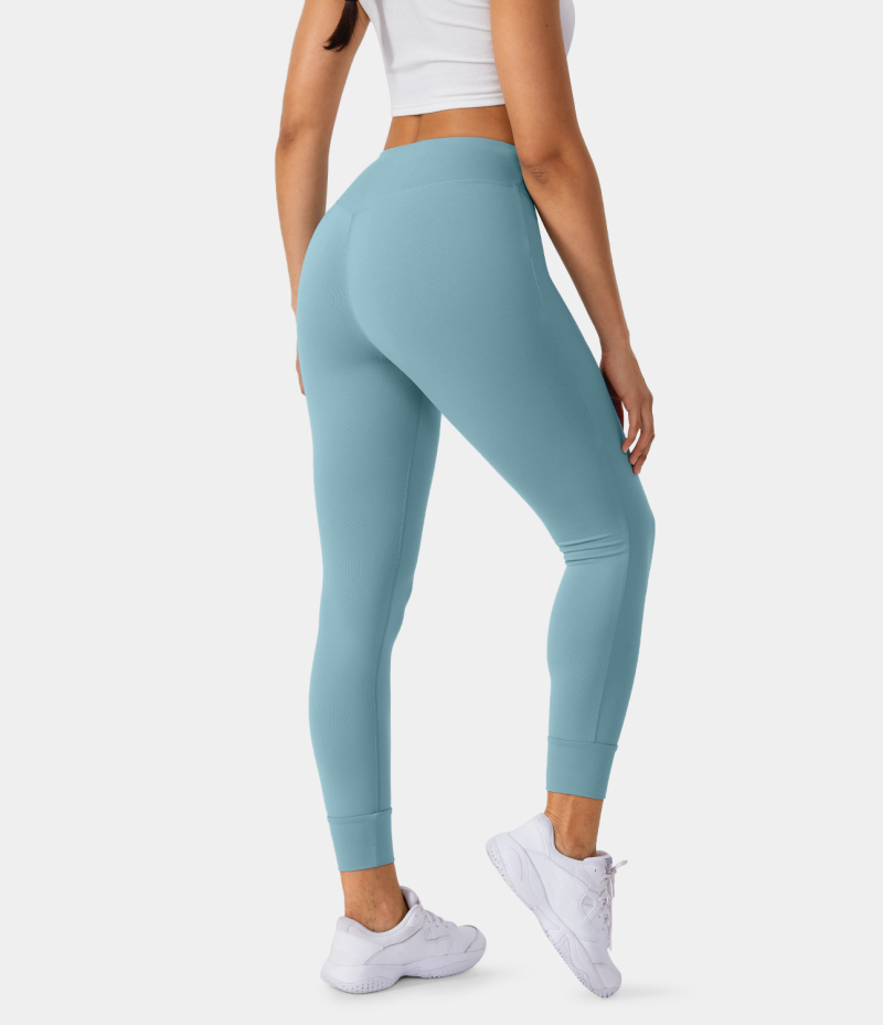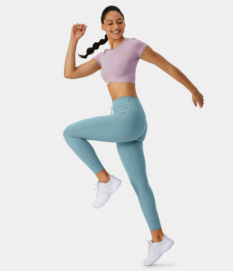 :: Halara High Waisted Drawstring Back Waistband Pocket Run Women's Leggings Carolina Blue | 386940-UAH