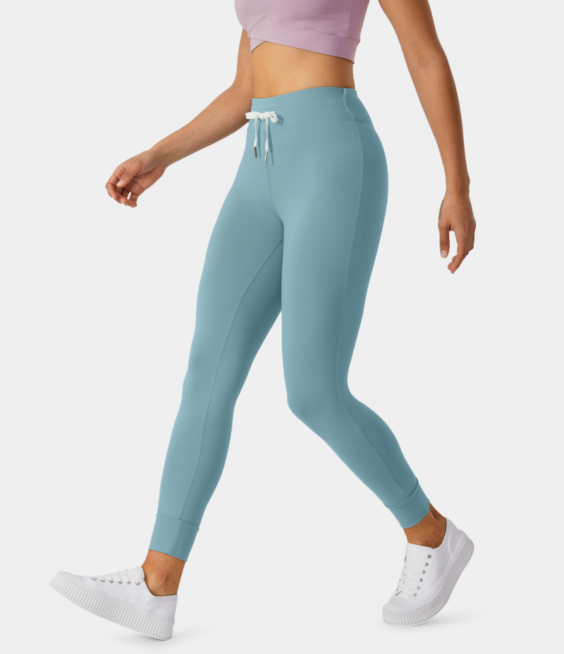Halara High Waisted Drawstring Back Waistband Pocket Run Women's Leggings Carolina Blue | 386940-UAH