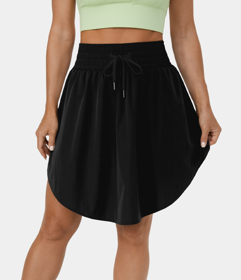 :: Halara High Waisted Drawstring Curved Hem 2-in-1 Casual Women's Skirts Black | 386714-ECR