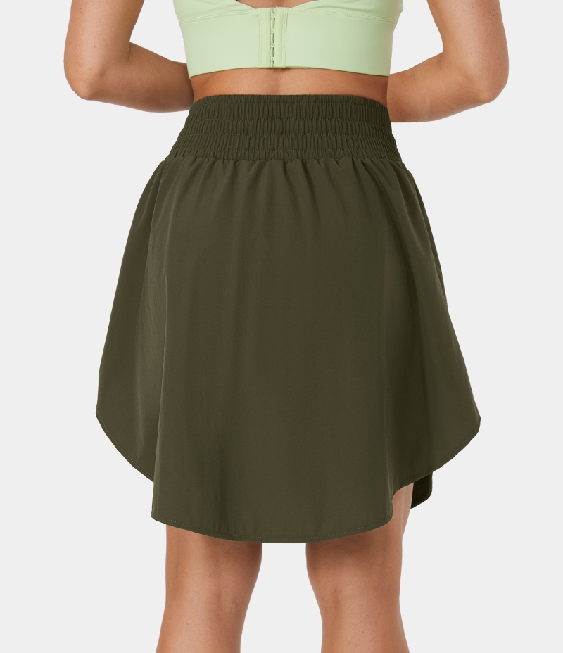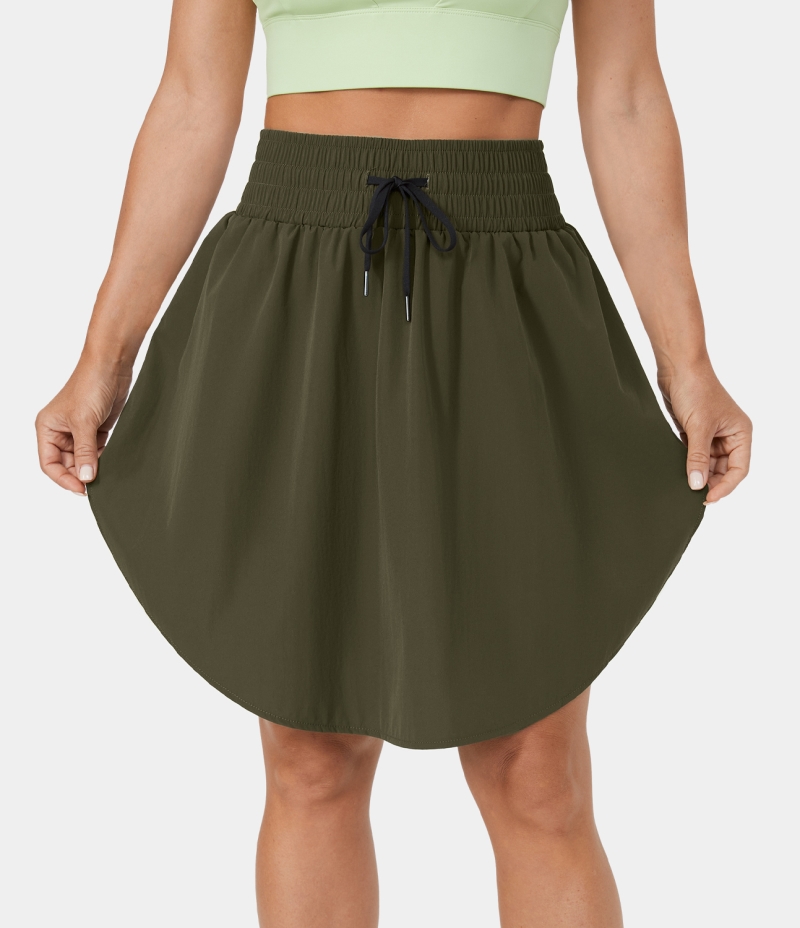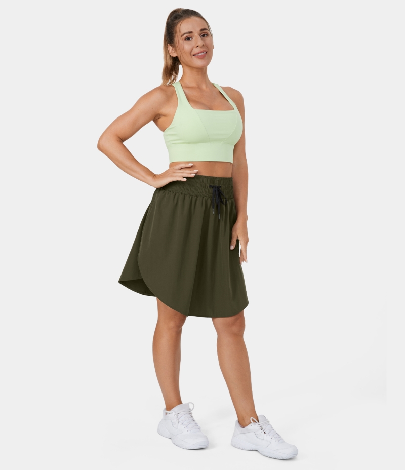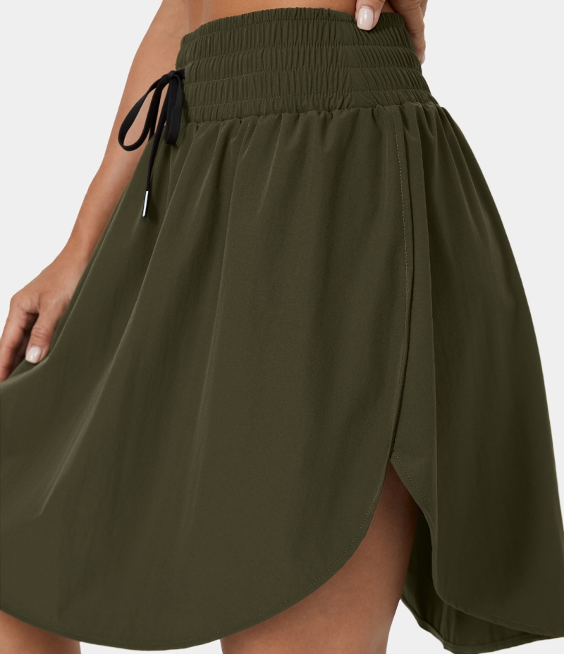 :: Halara High Waisted Drawstring Curved Hem 2-in-1 Casual Women's Skirts Olive Night | 976814-OQF