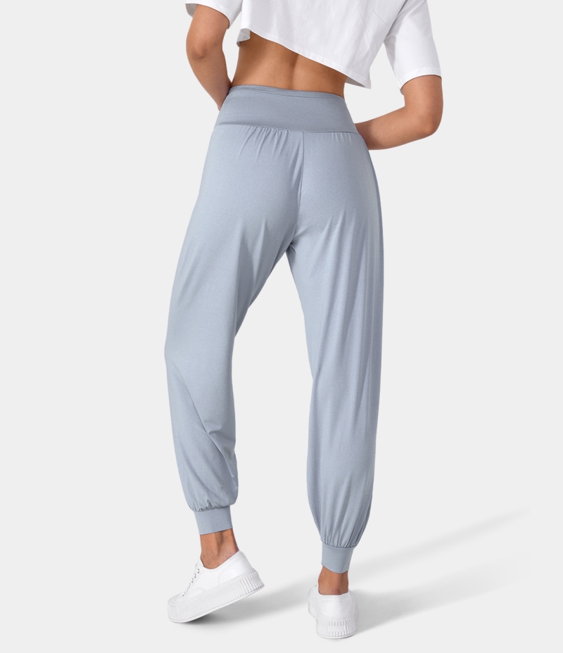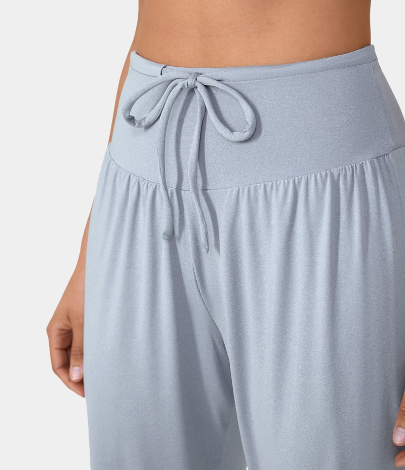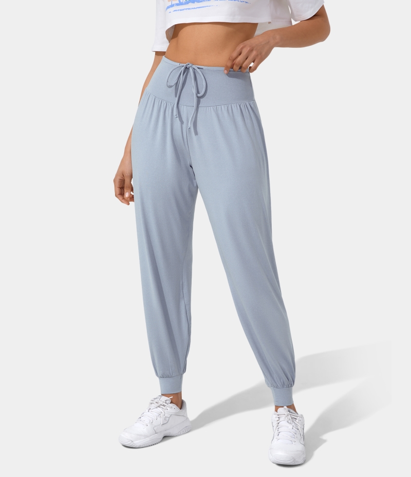 :: Halara High Waisted Drawstring Draped Casual Women's Pants Soft Blue | 138456-KRF