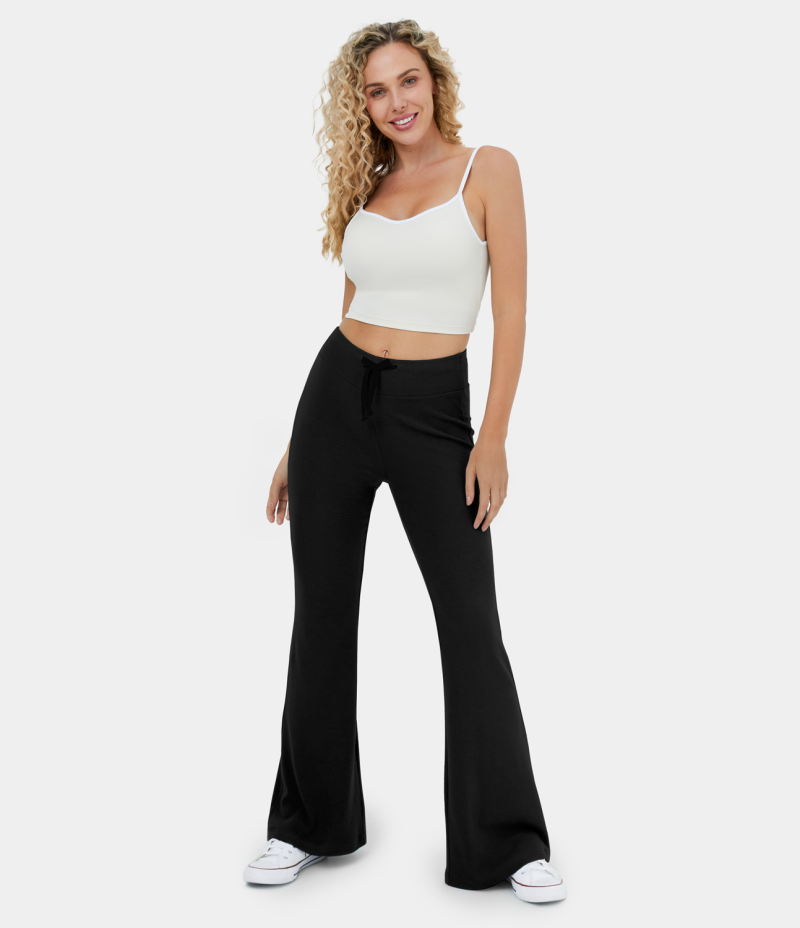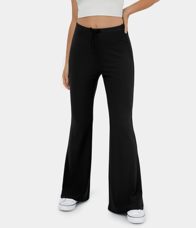 Halara High Waisted Drawstring Fleece Flare Casual Women's Leggings Black | 357089-KFE