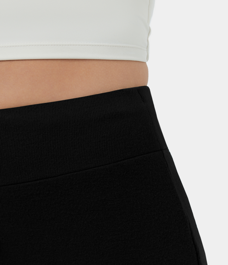 :: Halara High Waisted Drawstring Fleece Flare Casual Women's Leggings Black | 357089-KFE