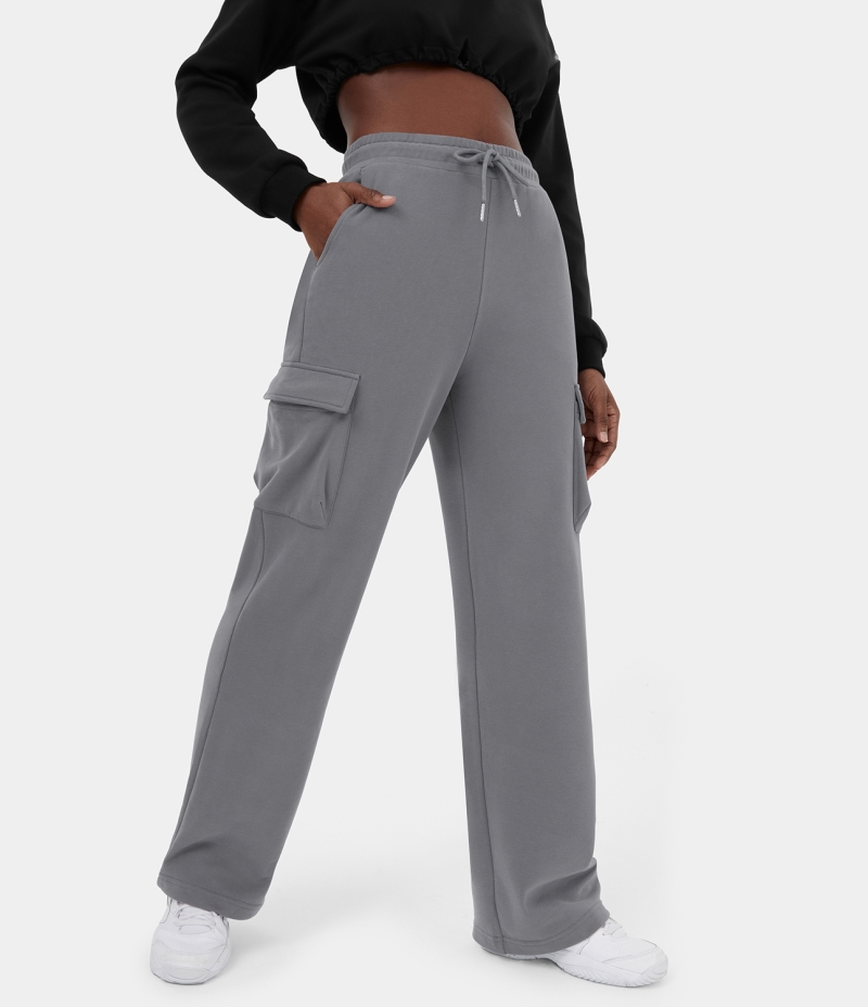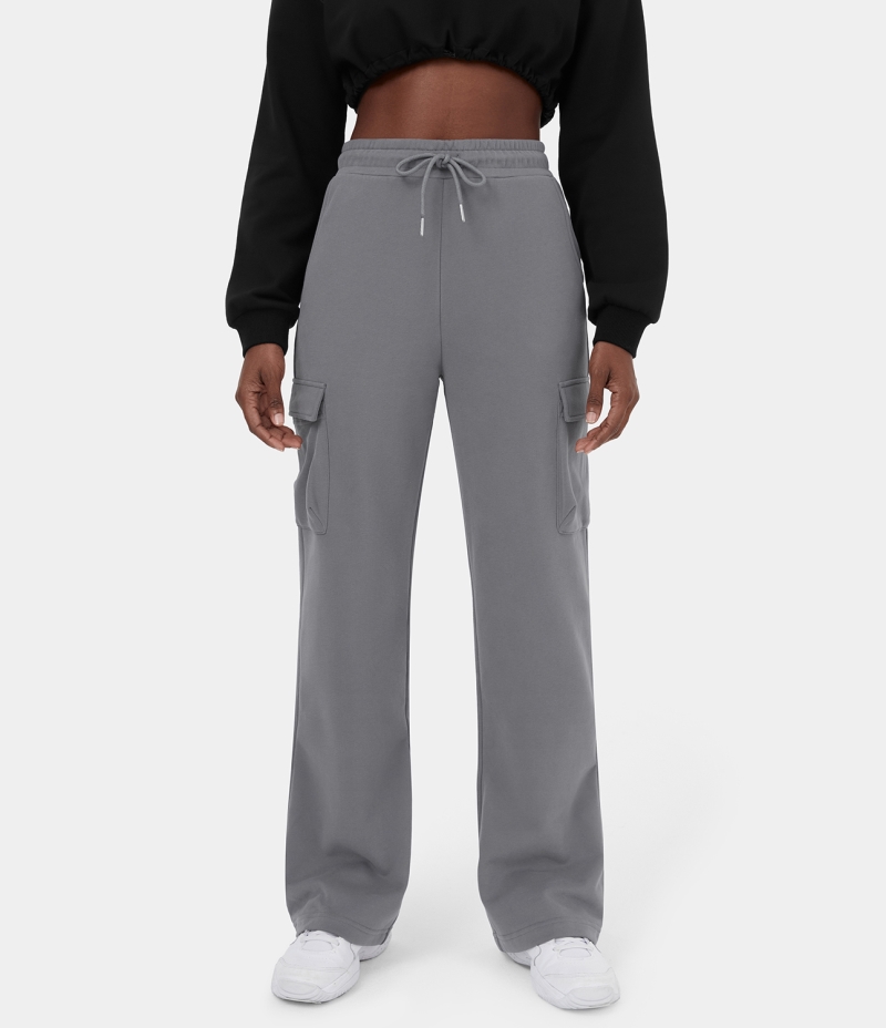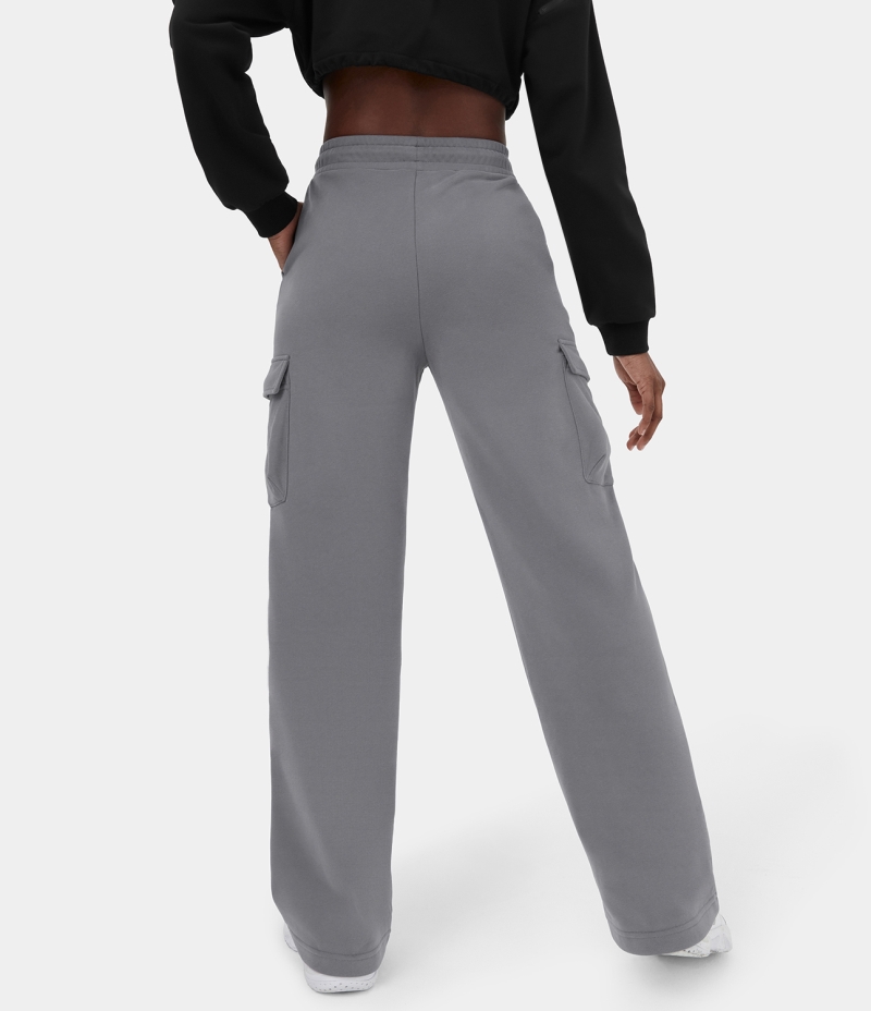 :: Halara High Waisted Drawstring Multiple Pockets Fleece Straight Leg Casual Cargo Women's Pants Quicksilver | 520397-EAO