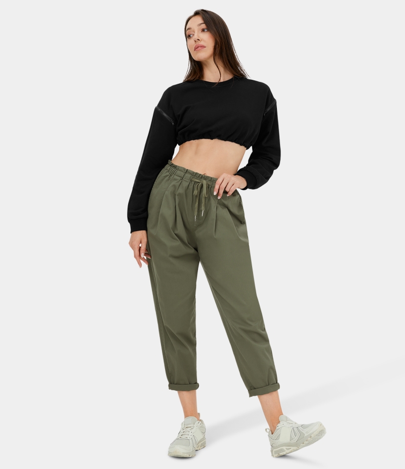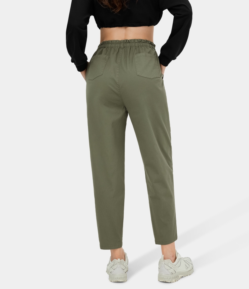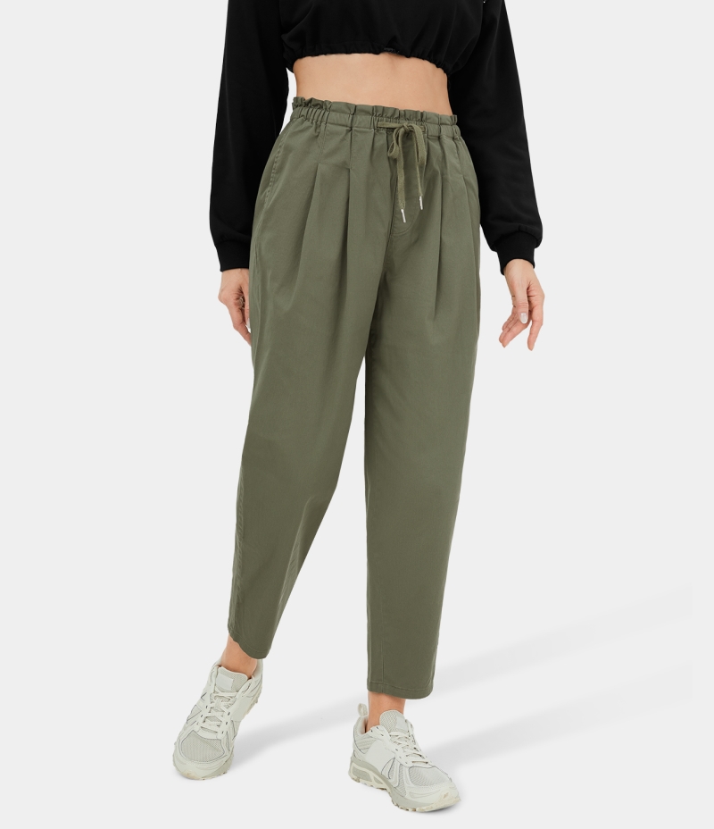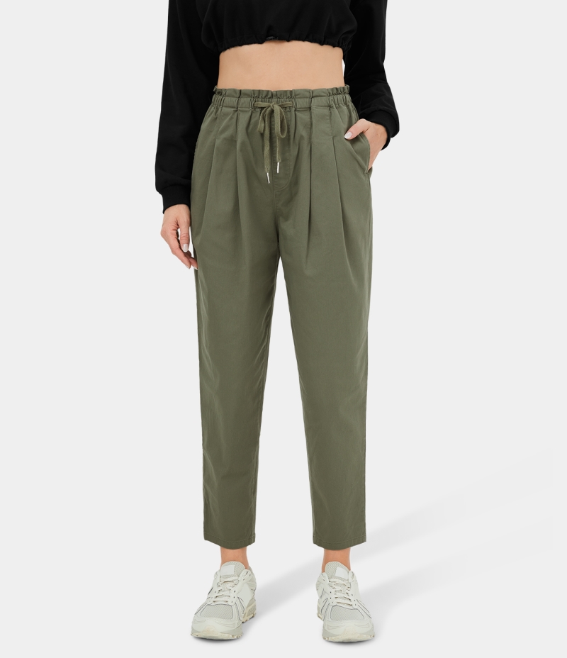 :: Halara High Waisted Drawstring Ruched Pocket Casual Women's Pants Loden Green | 291745-PDH