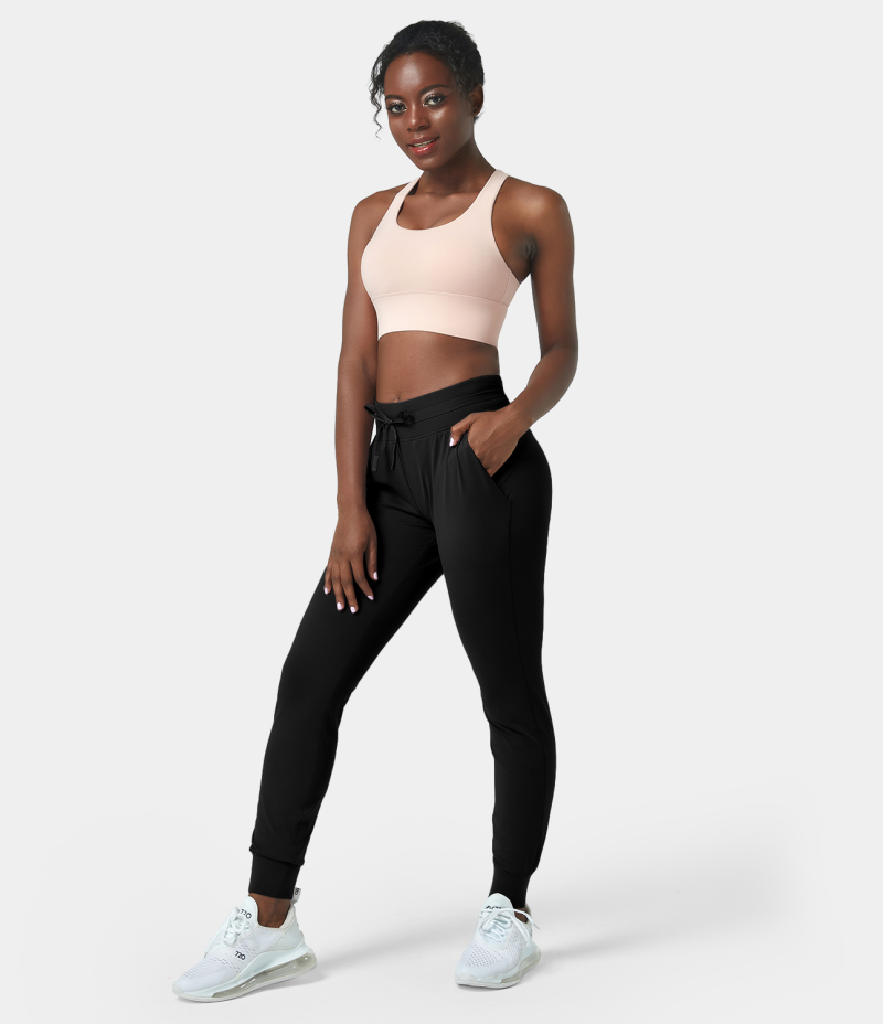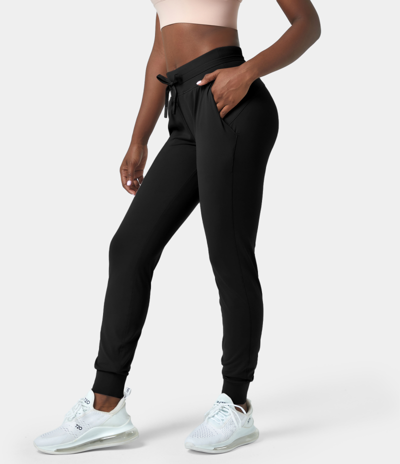 Halara High Waisted Drawstring Side Pocket Casual Women's Jogger Black | 125706-DAL