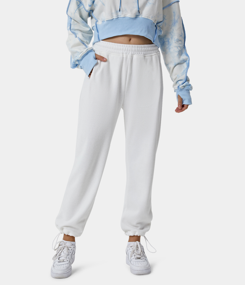 Halara High Waisted Drawstring Side Pocket Classic Women's Sweatpants White | NLRDEUV-53