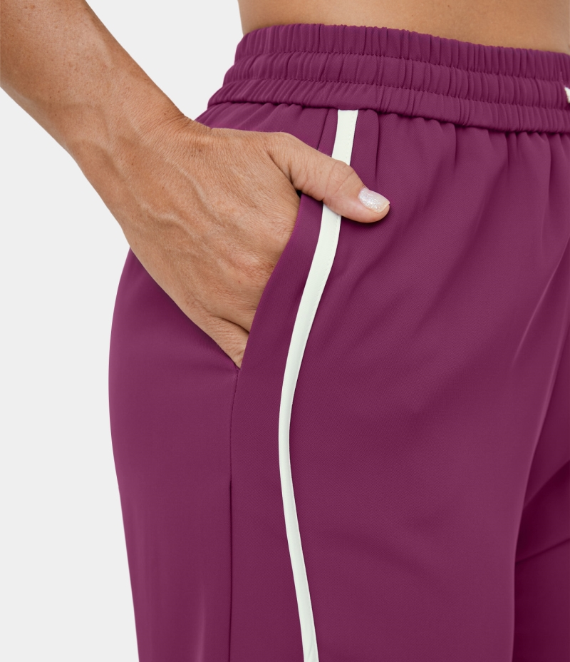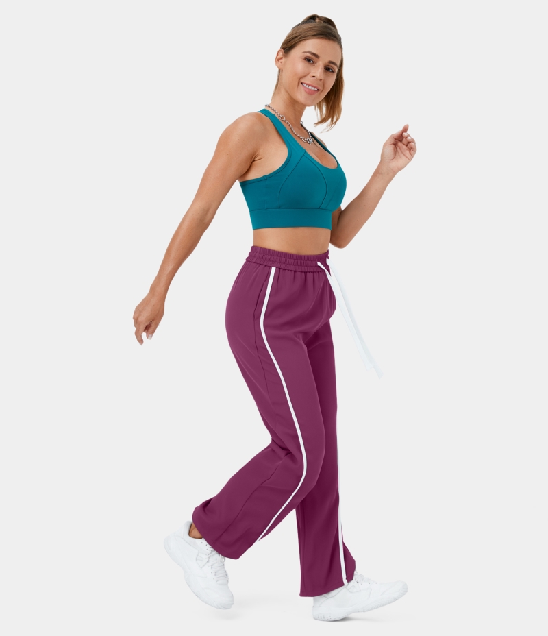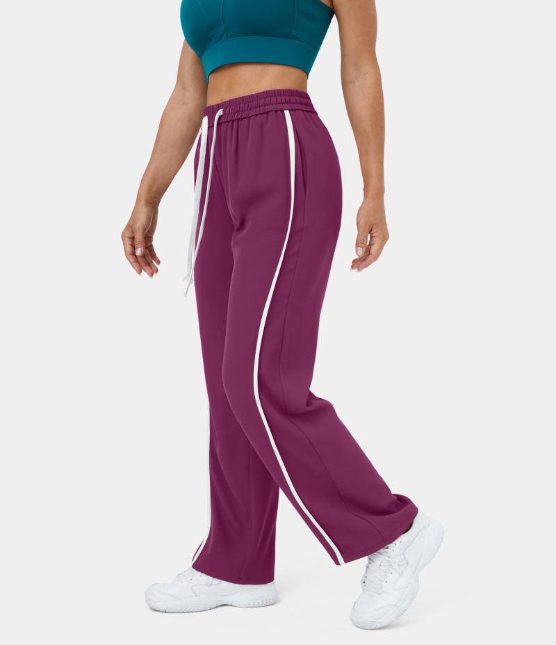 Halara High Waisted Drawstring Side Pocket Color Block Wide Leg Casual Women's Pants Magenta Purple | 108392-WNC