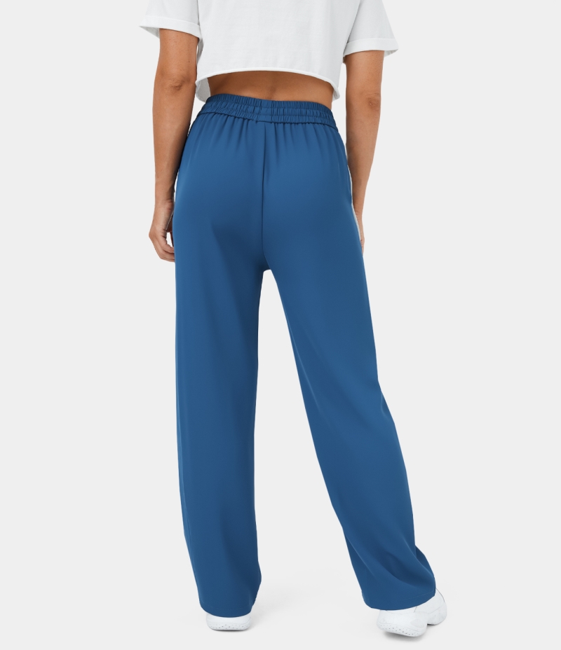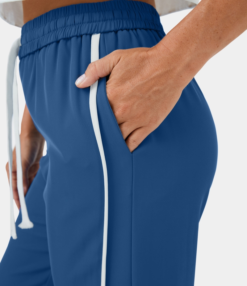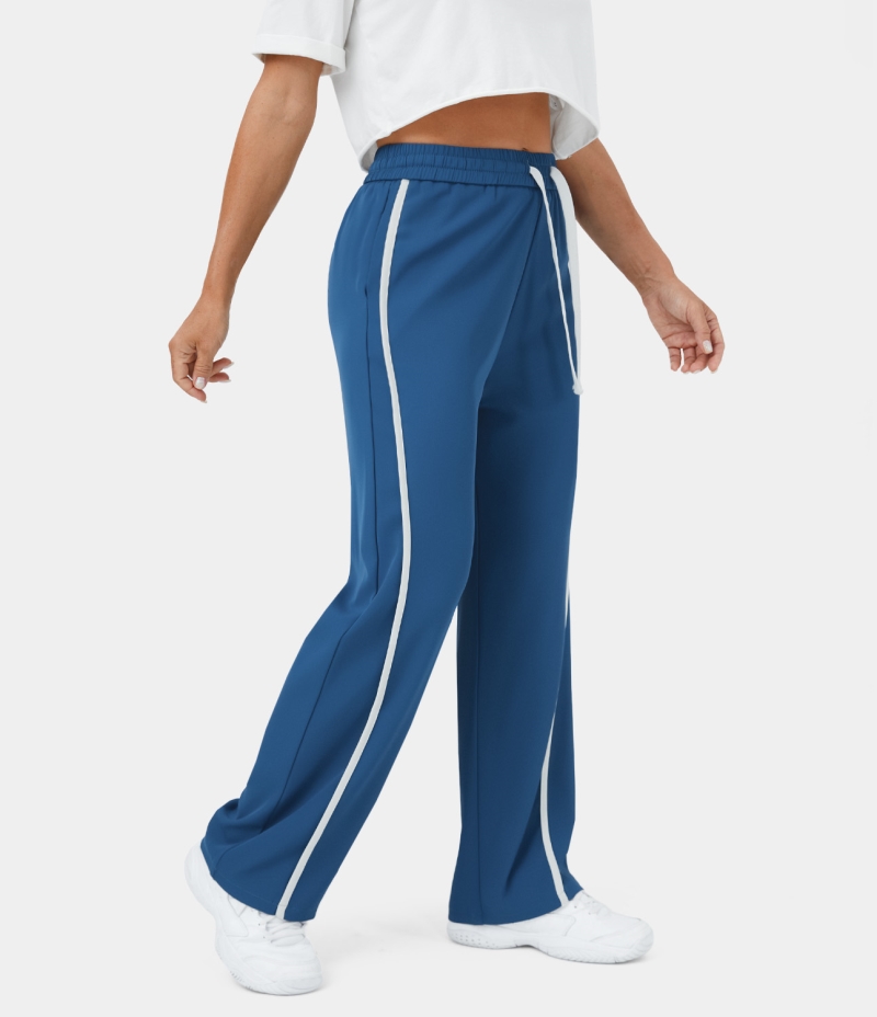 Halara High Waisted Drawstring Side Pocket Color Block Wide Leg Casual Women's Pants True Blue | 758140-UYD
