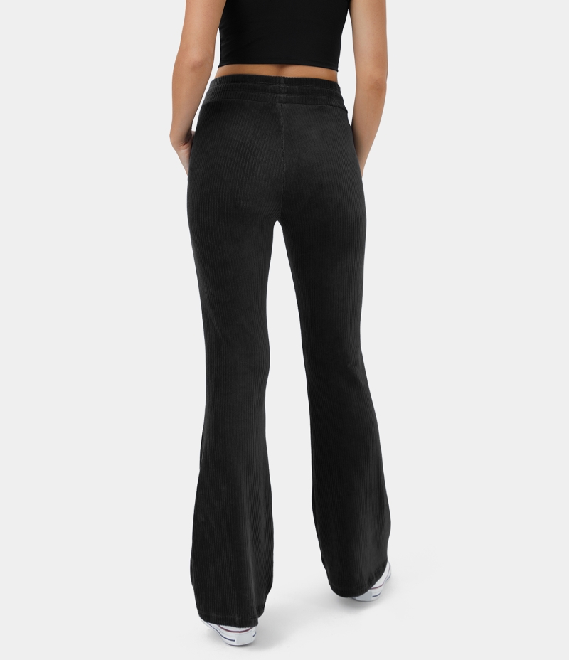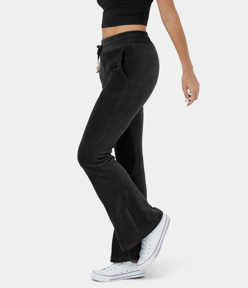 :: Halara High Waisted Drawstring Side Pocket Flare Casual Corduroy Women's Pants Black | 561309-RJS