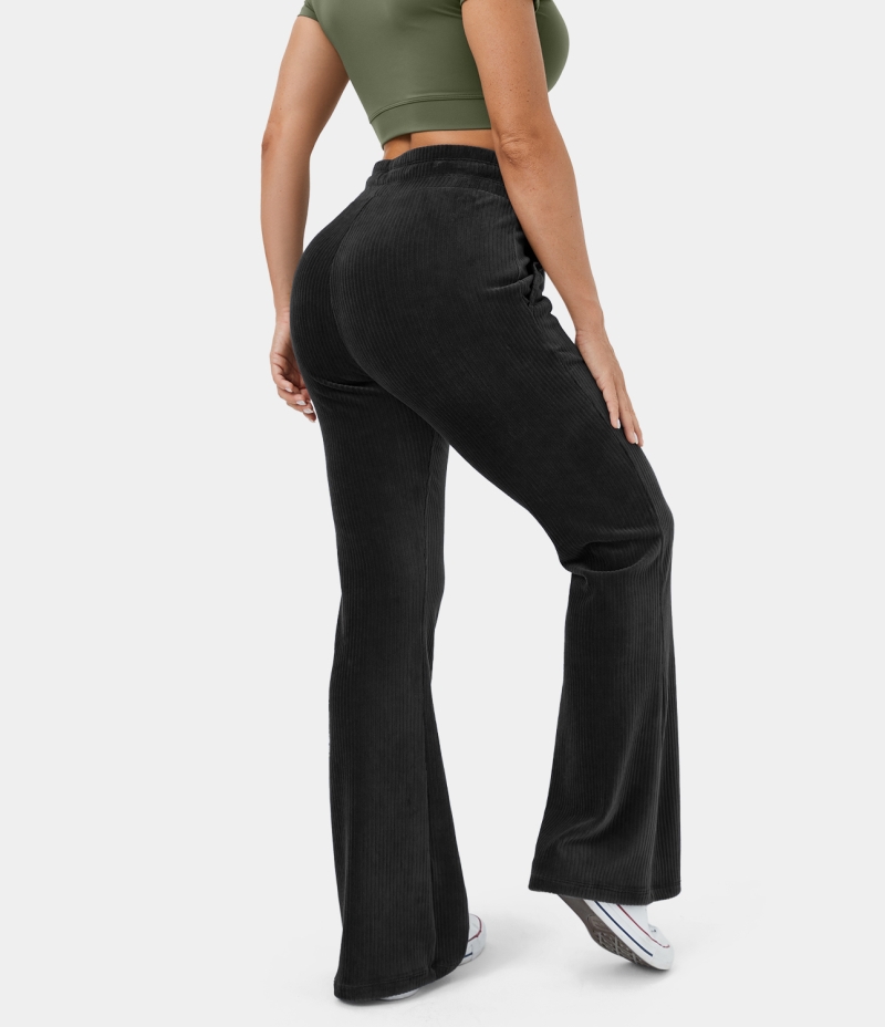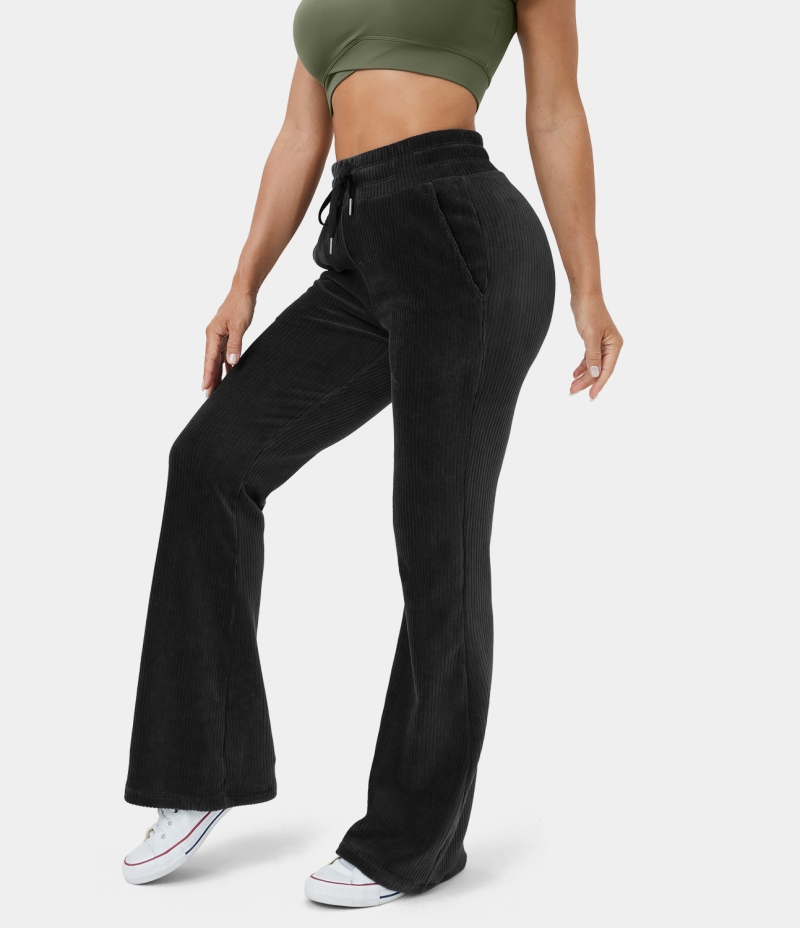 Halara High Waisted Drawstring Side Pocket Flare Casual Corduroy Women's Pants Black | 561309-RJS