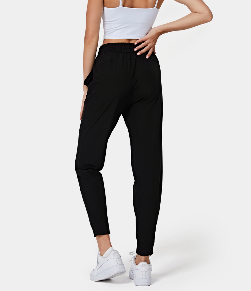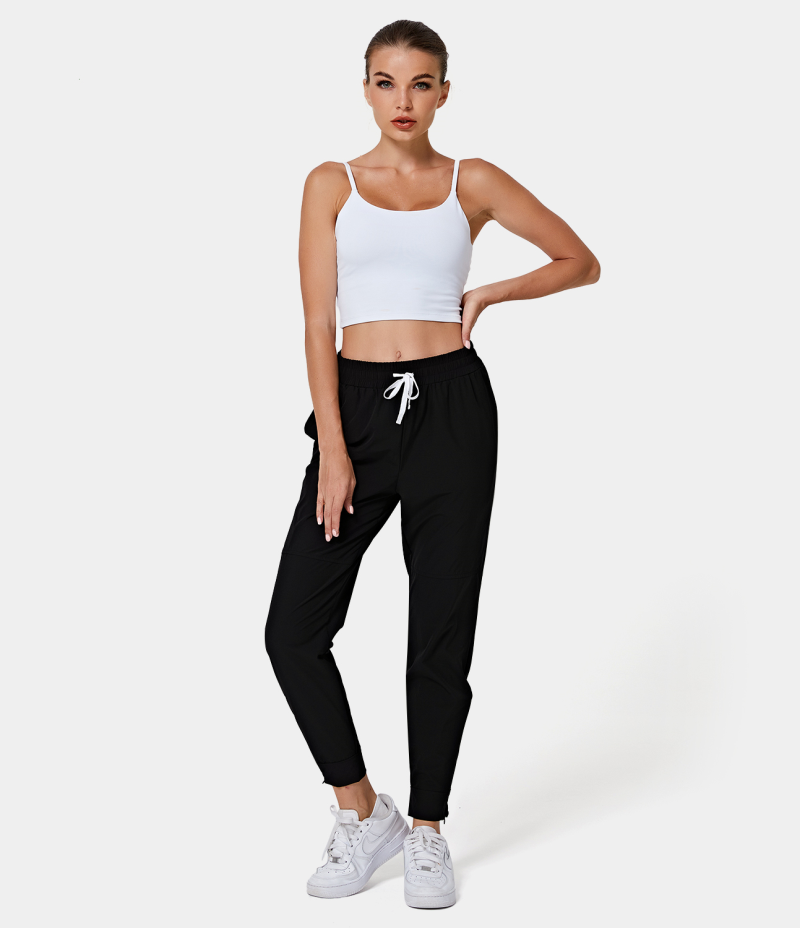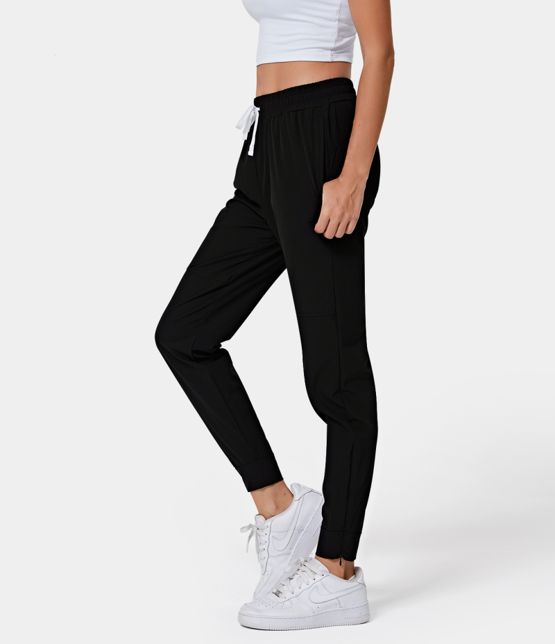 :: Halara High Waisted Drawstring Side Pocket Plain Full Length Women's Jogger Black | 385160-EMQ