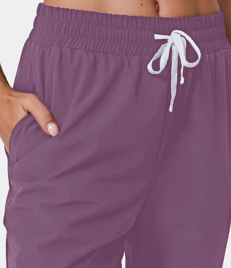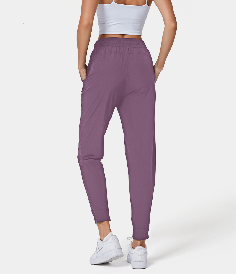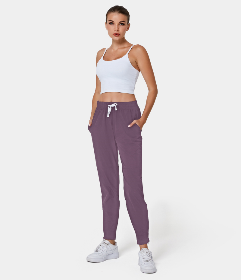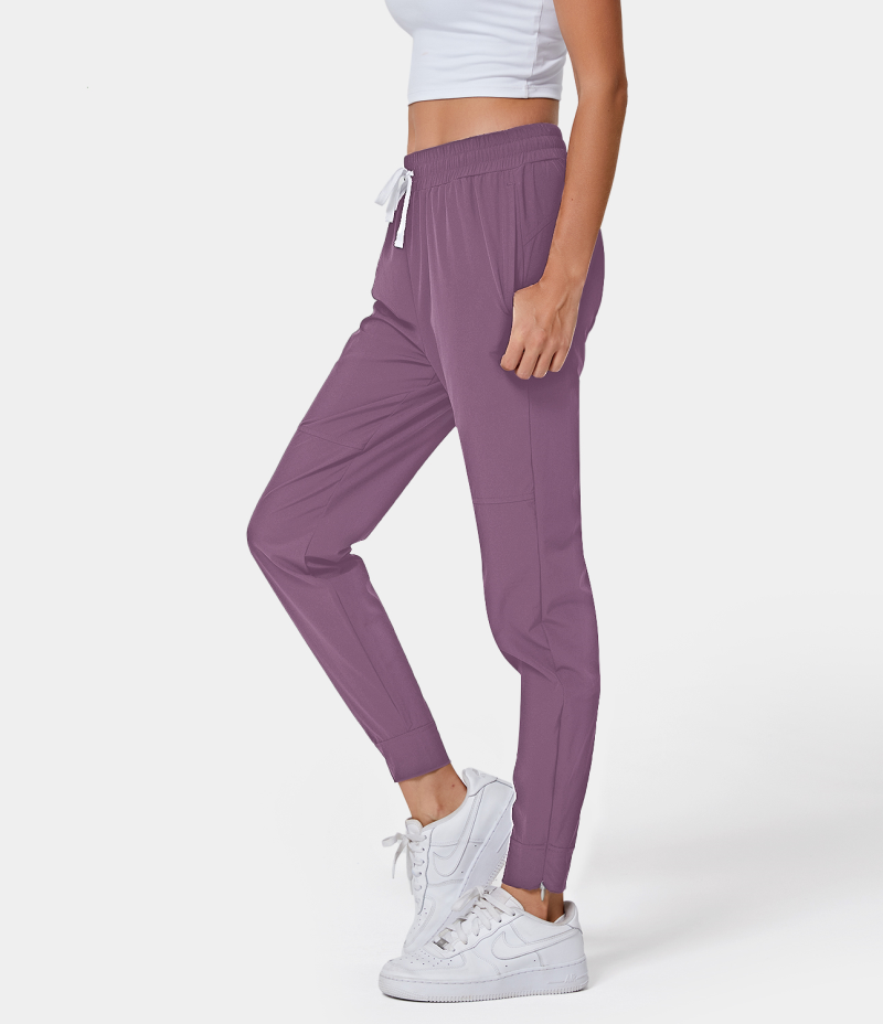 :: Halara High Waisted Drawstring Side Pocket Plain Full Length Women's Jogger Dark Plum | 078951-HDU