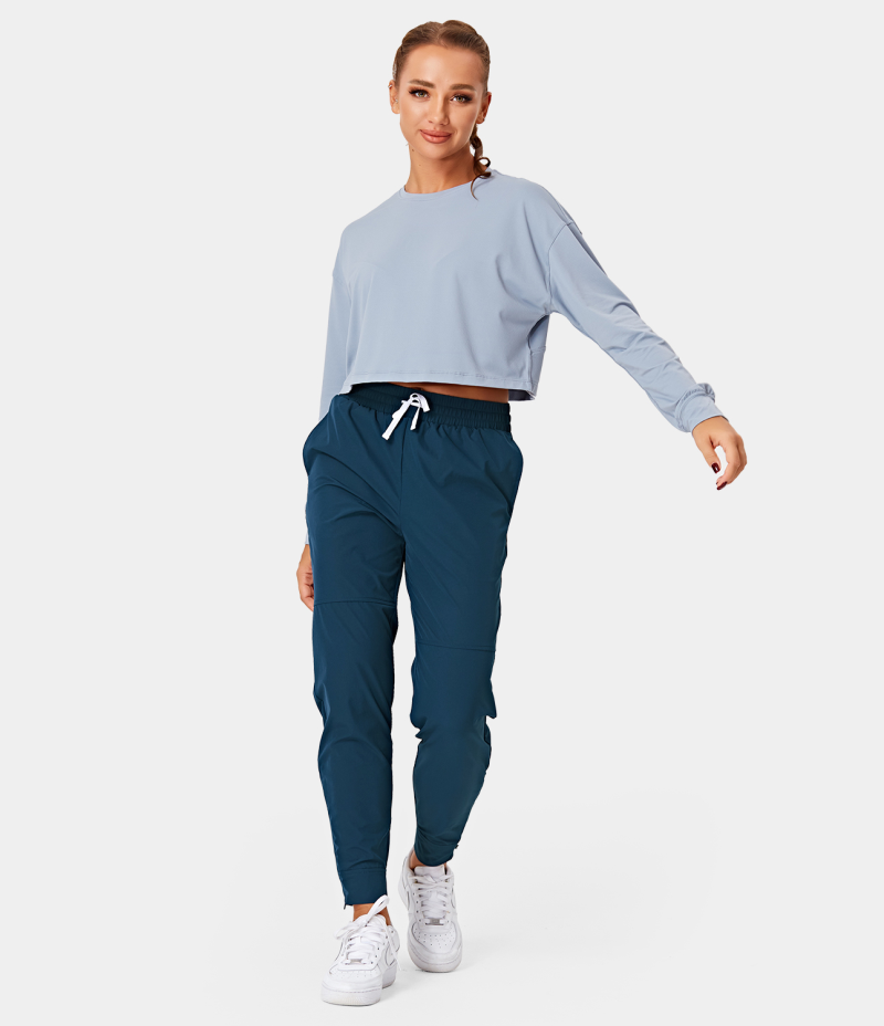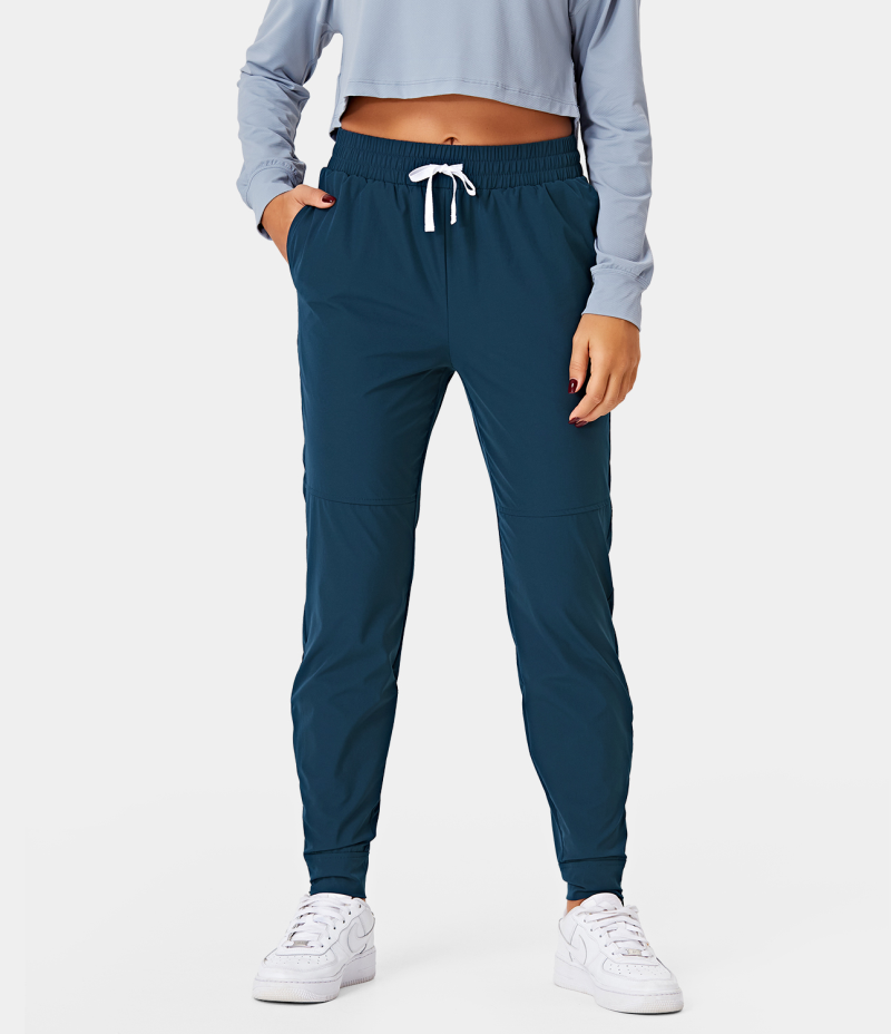 :: Halara High Waisted Drawstring Side Pocket Plain Full Length Women's Jogger Oxford Blue | 982501-CPQ