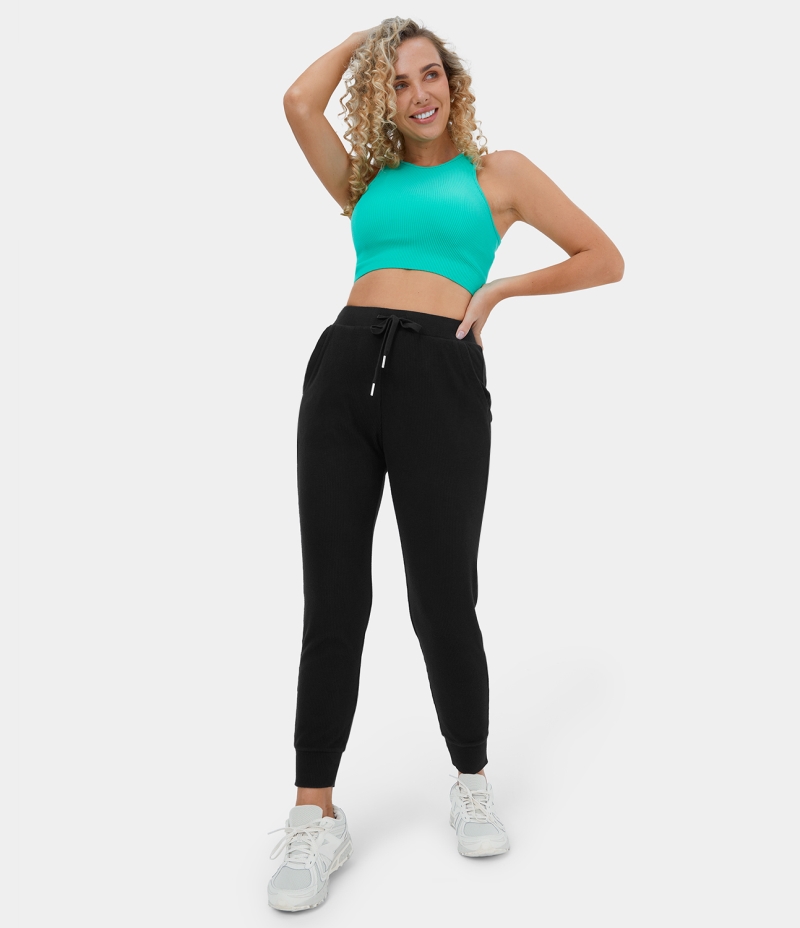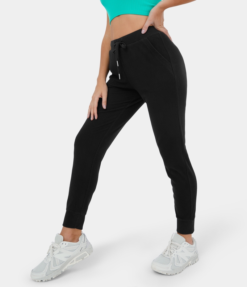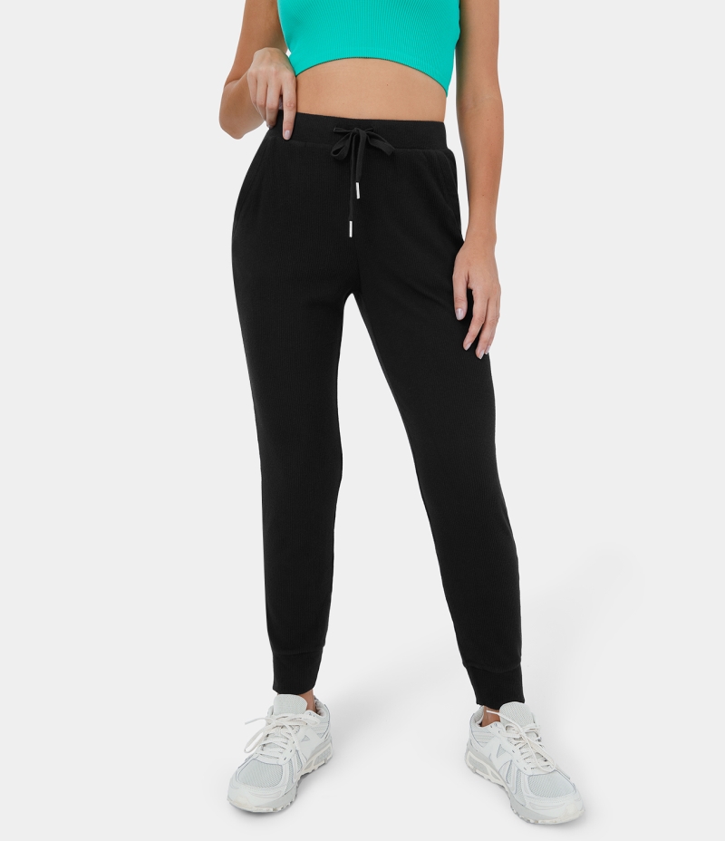 Halara High Waisted Drawstring Side Pocket Plus Back Pocket Casual Women's Jogger Black | 961405-HFE