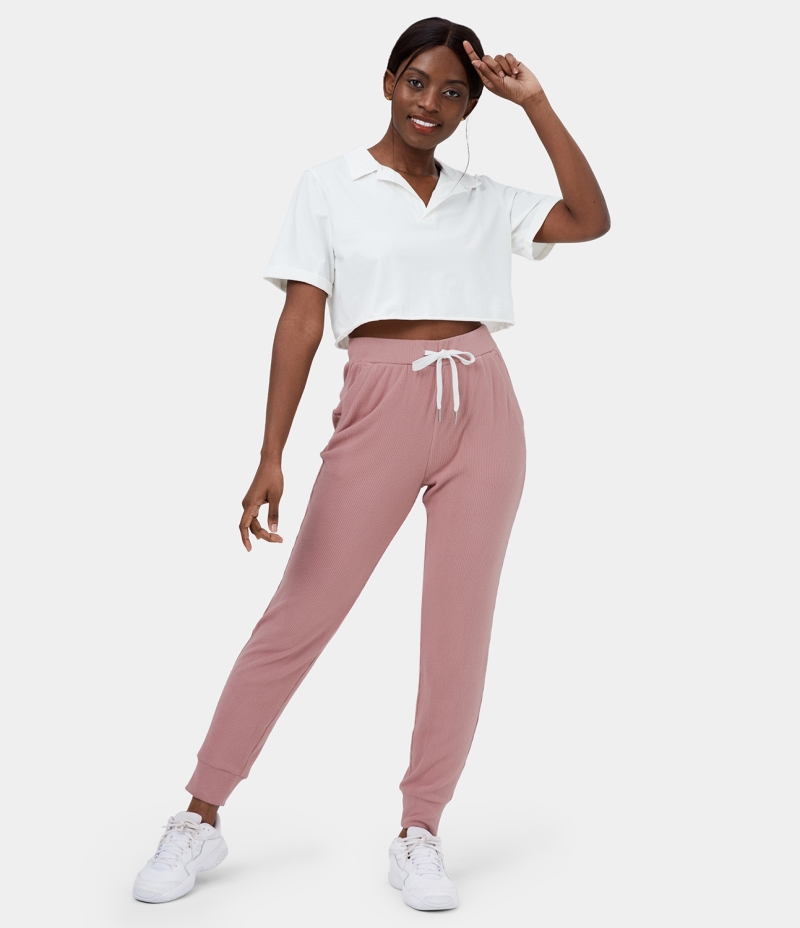 :: Halara High Waisted Drawstring Side Pocket Plus Back Pocket Casual Women's Jogger Soft Berry | 810357-SBE