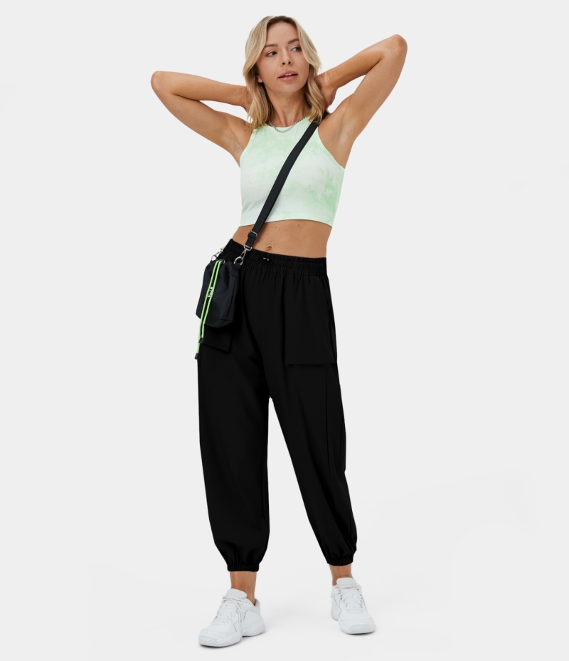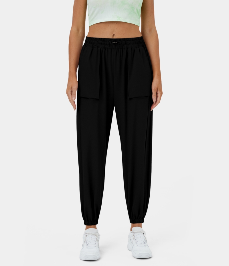 :: Halara High Waisted Drawstring Side Pocket Relaxed Casual Women's Jogger Black | 043812-EGY