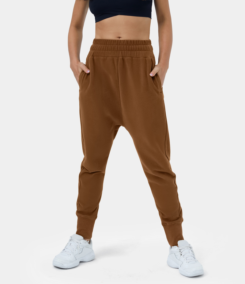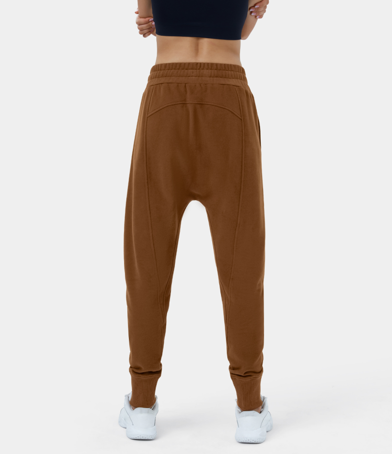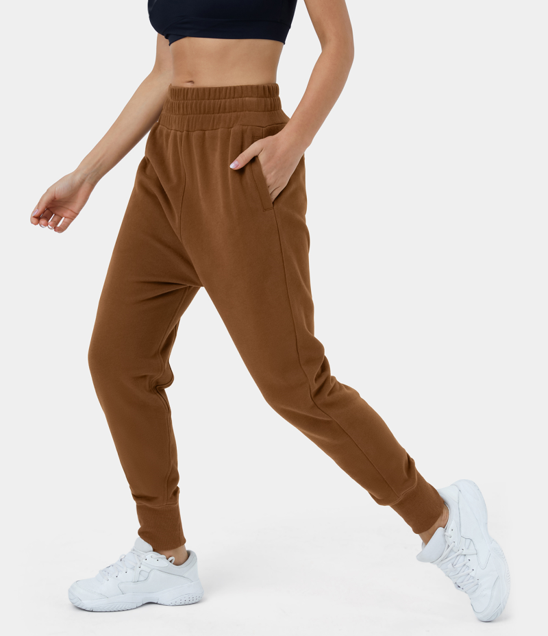 :: Halara High Waisted Drawstring Side Pocket Ribbed Cuffs Fleece Casual Harem Women's Jogger Coffee | 153907-KPZ