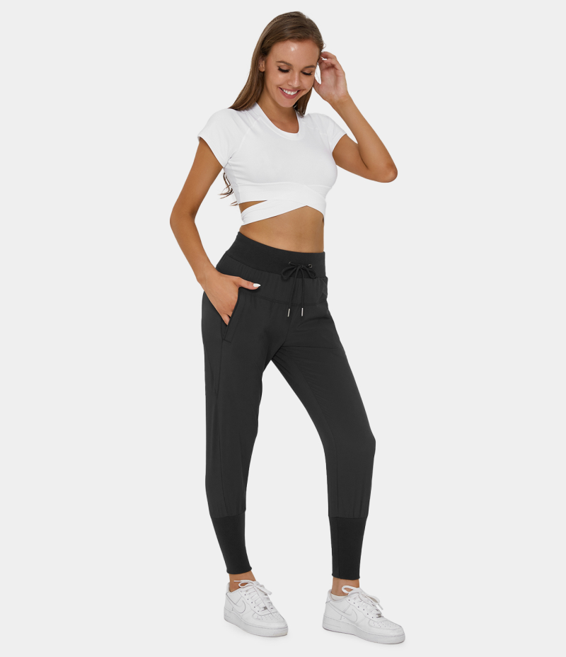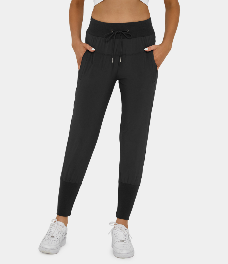 :: Halara High Waisted Drawstring Side Pocket Slimming Women's Jogger Black | 578906-TMH