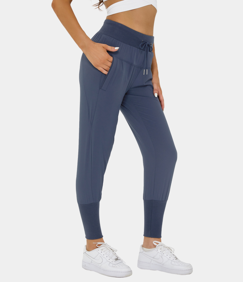 :: Halara High Waisted Drawstring Side Pocket Slimming Women's Jogger Blue Gray | 574620-IWT