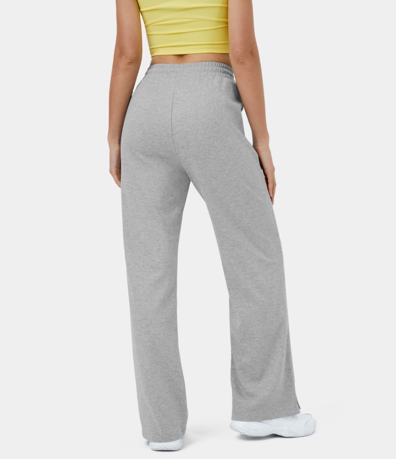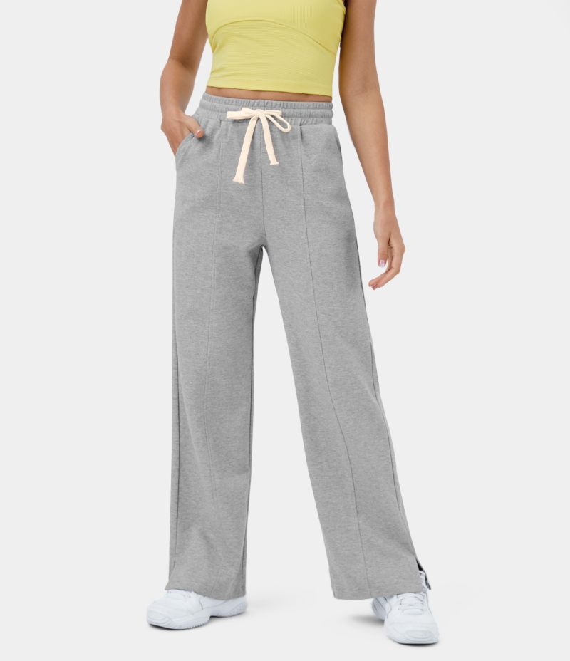 :: Halara High Waisted Drawstring Side Pocket Split Hem Flare Casual Women's Pants Quiet Gray | 804351-SZX