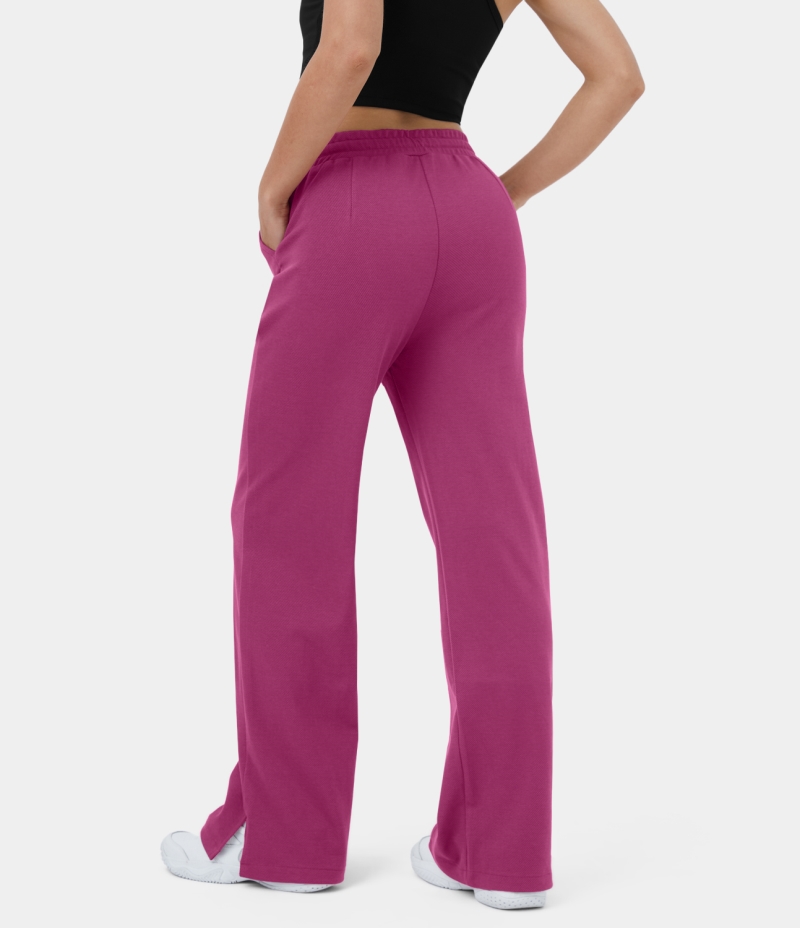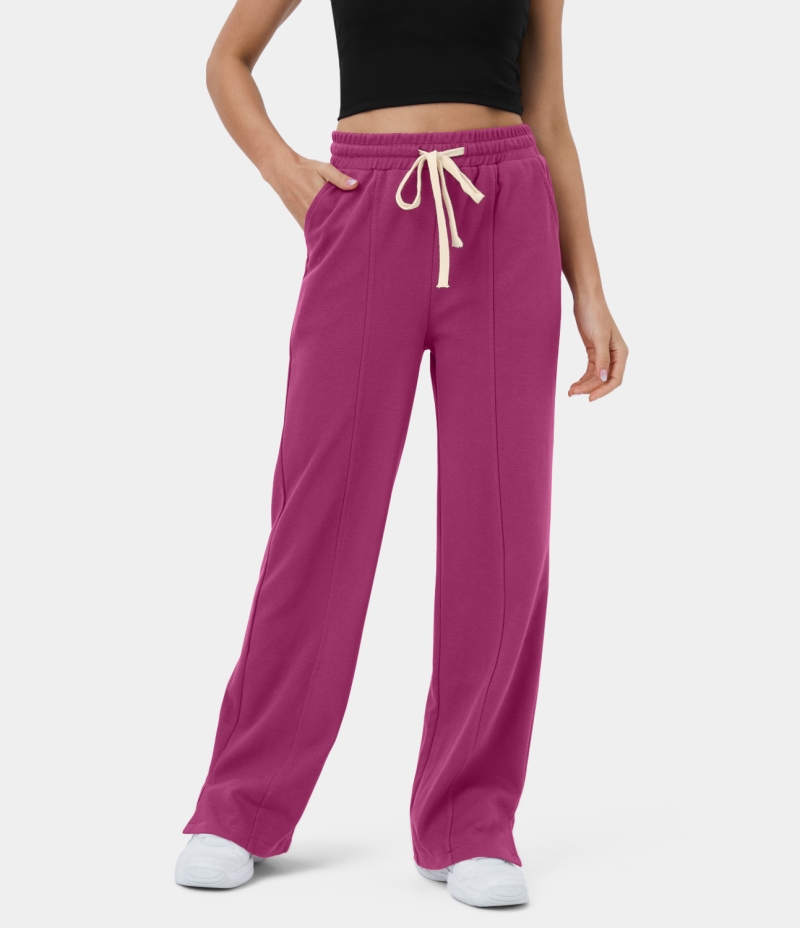 :: Halara High Waisted Drawstring Side Pocket Split Hem Flare Casual Women's Pants Raspberry Coulis | 718095-XNC