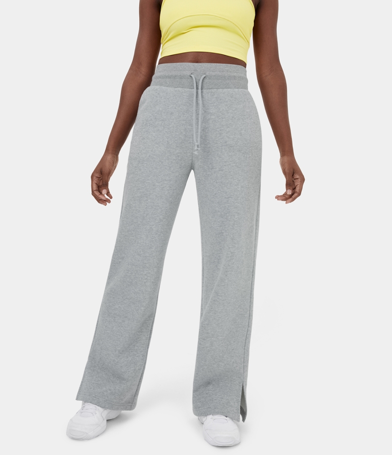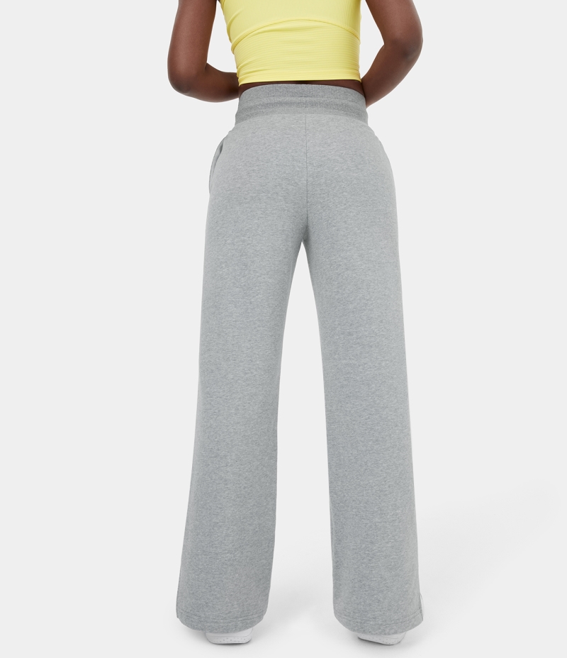 :: Halara High Waisted Drawstring Side Pocket Split Wide Leg Fleece Casual Women's Pants Aloof Grey | 386751-HUE