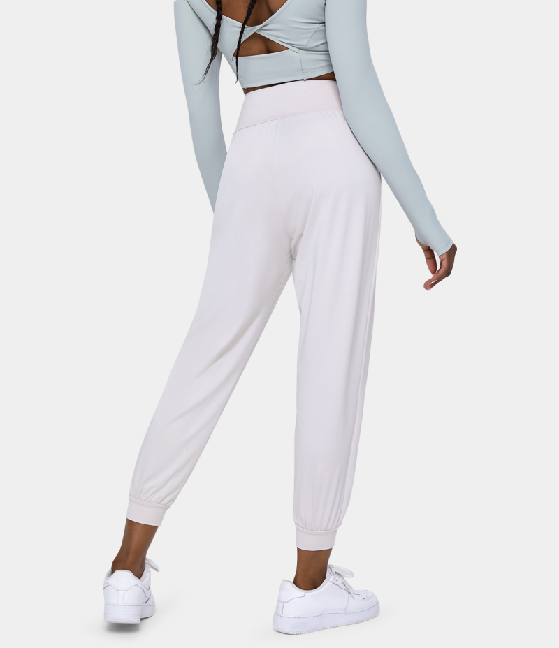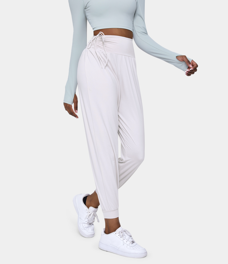 Halara High Waisted Drawstring Side Ruched Plain Women's Pants White | 785410-JWO