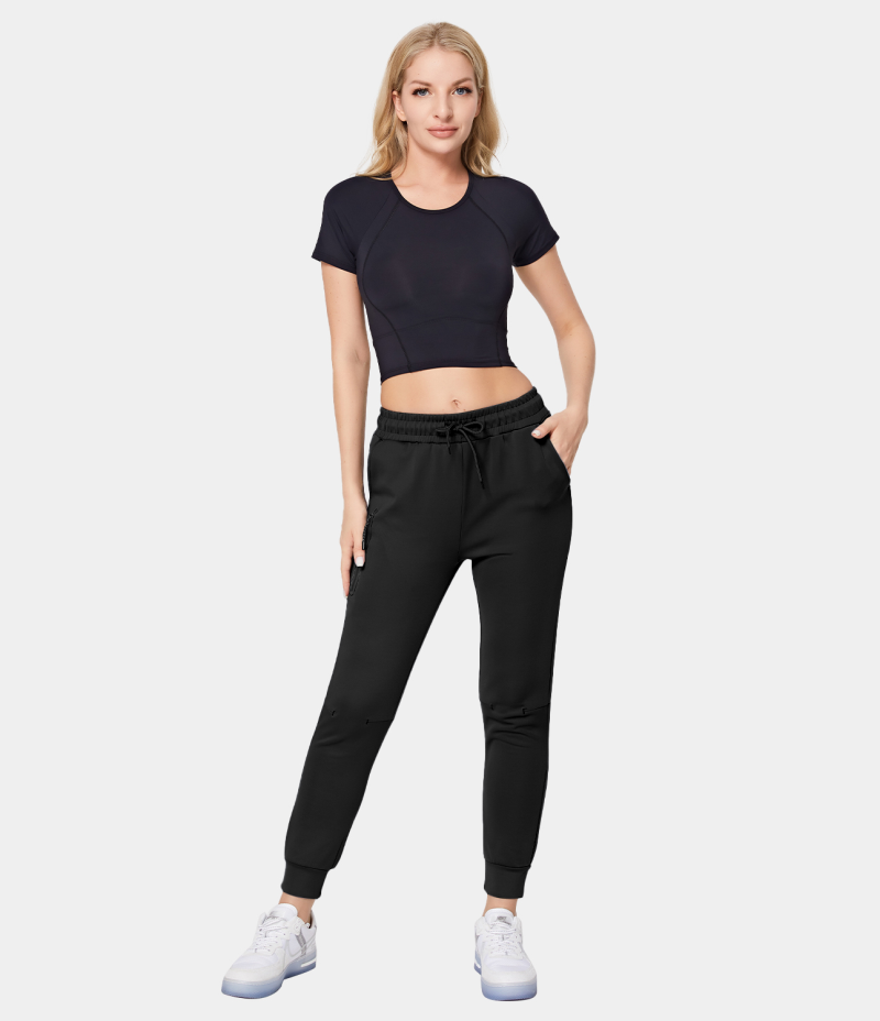 :: Halara High Waisted Drawstring Side Zipper Pocket Women's Jogger Black | 691804-LQZ