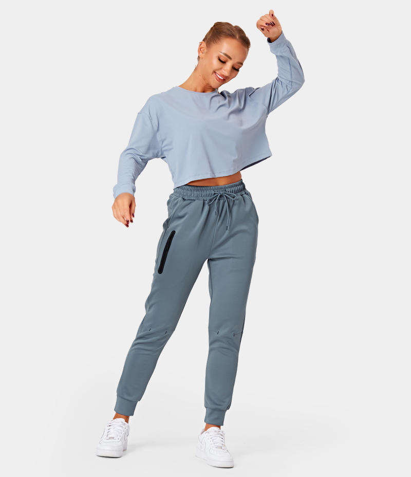 :: Halara High Waisted Drawstring Side Zipper Pocket Women's Jogger Light Blue | 029683-ZUX