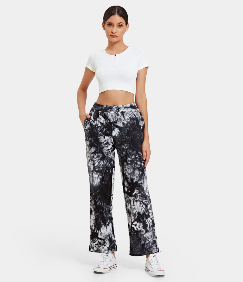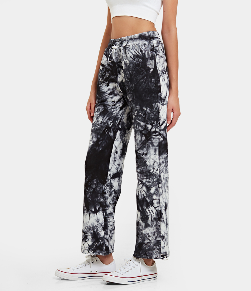 :: Halara High Waisted Drawstring Tie Dye Wide Leg Women's Pants Ash Black | 027584-BUF