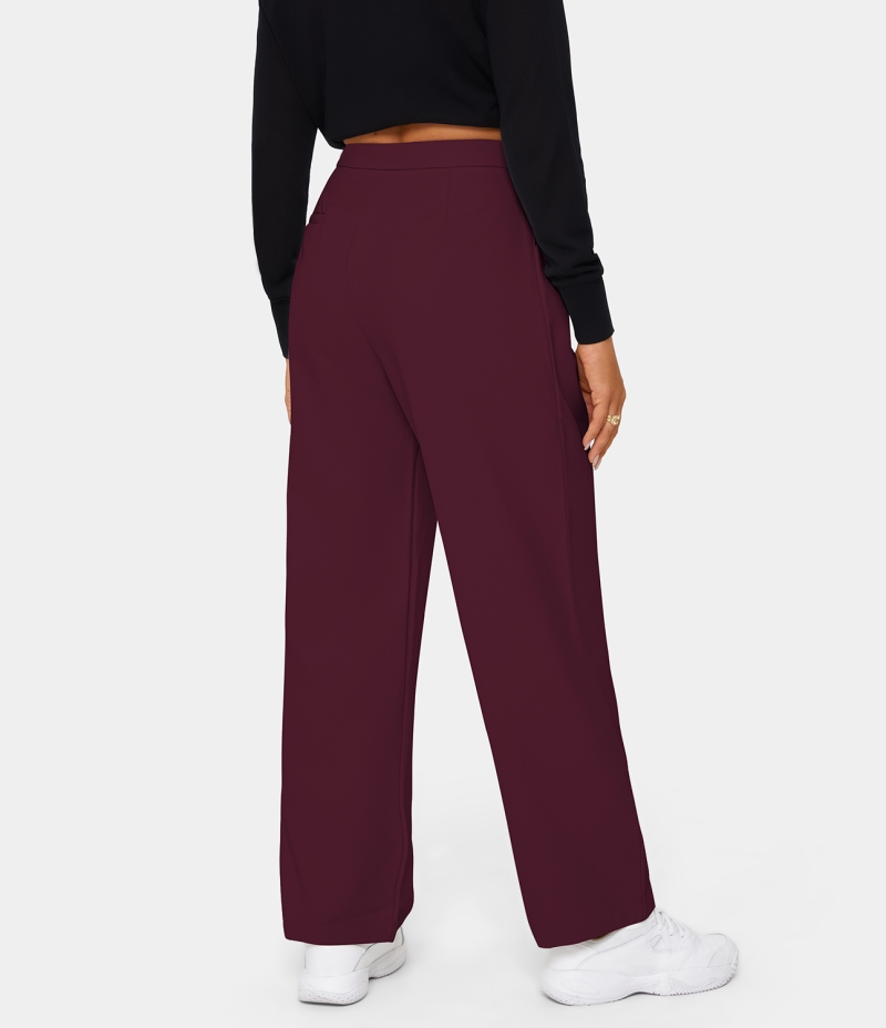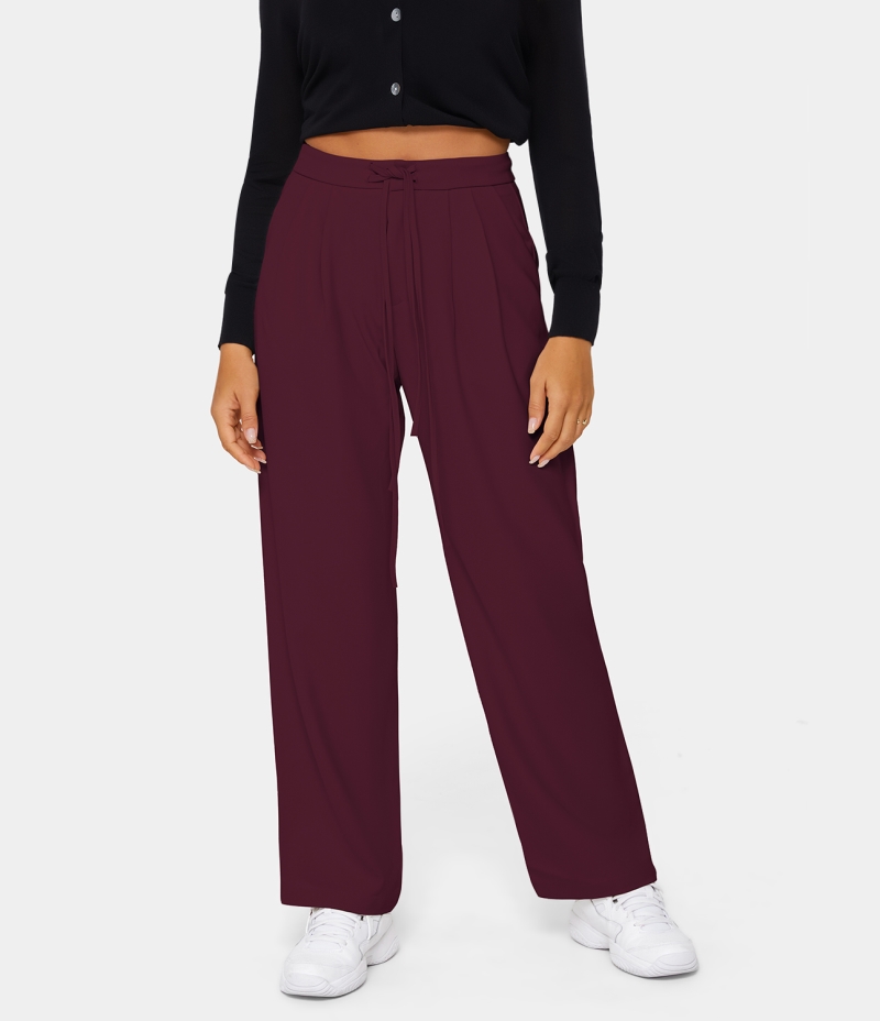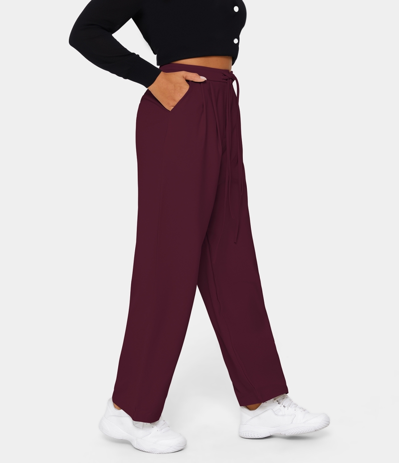 :: Halara High Waisted Drawstring Zipper Side Pocket Plain Wide Leg Women's Pants Potent Purple | 346701-USQ