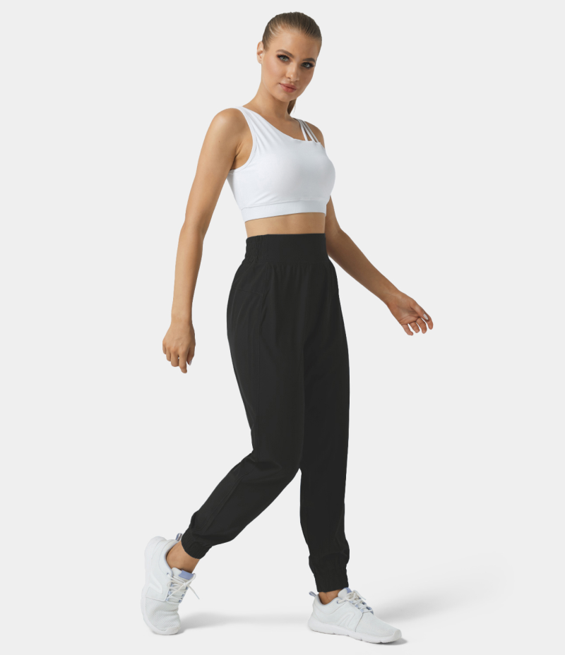 :: Halara High Waisted Elastic Waistband Casual Women's Jogger Black | 529187-JLN