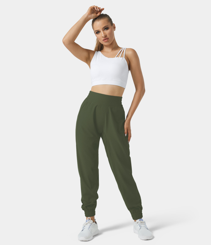:: Halara High Waisted Elastic Waistband Casual Women's Jogger Chive | 781294-LJS