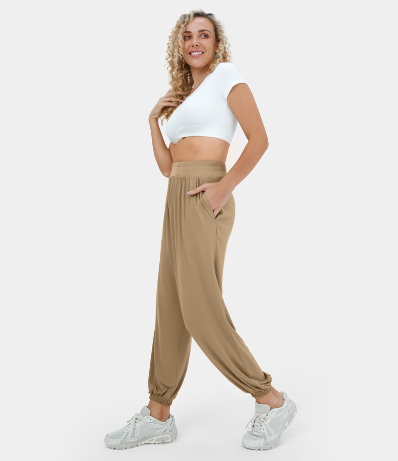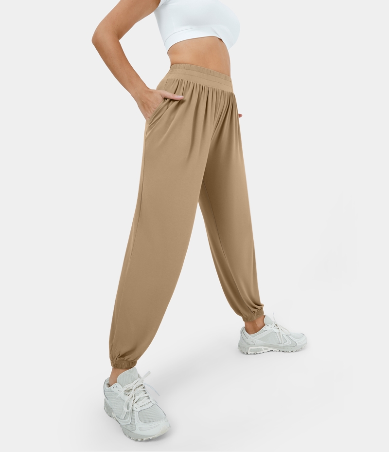 :: Halara High Waisted Elastic Waistband Draped Side Pocket Casual Women's Jogger Cornstalk | 460931-KUZ
