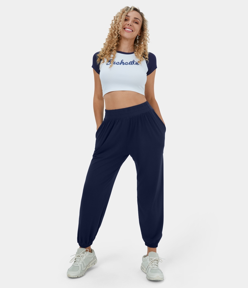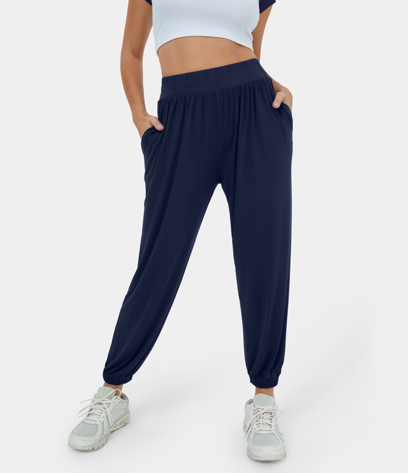 :: Halara High Waisted Elastic Waistband Draped Side Pocket Casual Women's Jogger Maritime Blue | 618497-PRW
