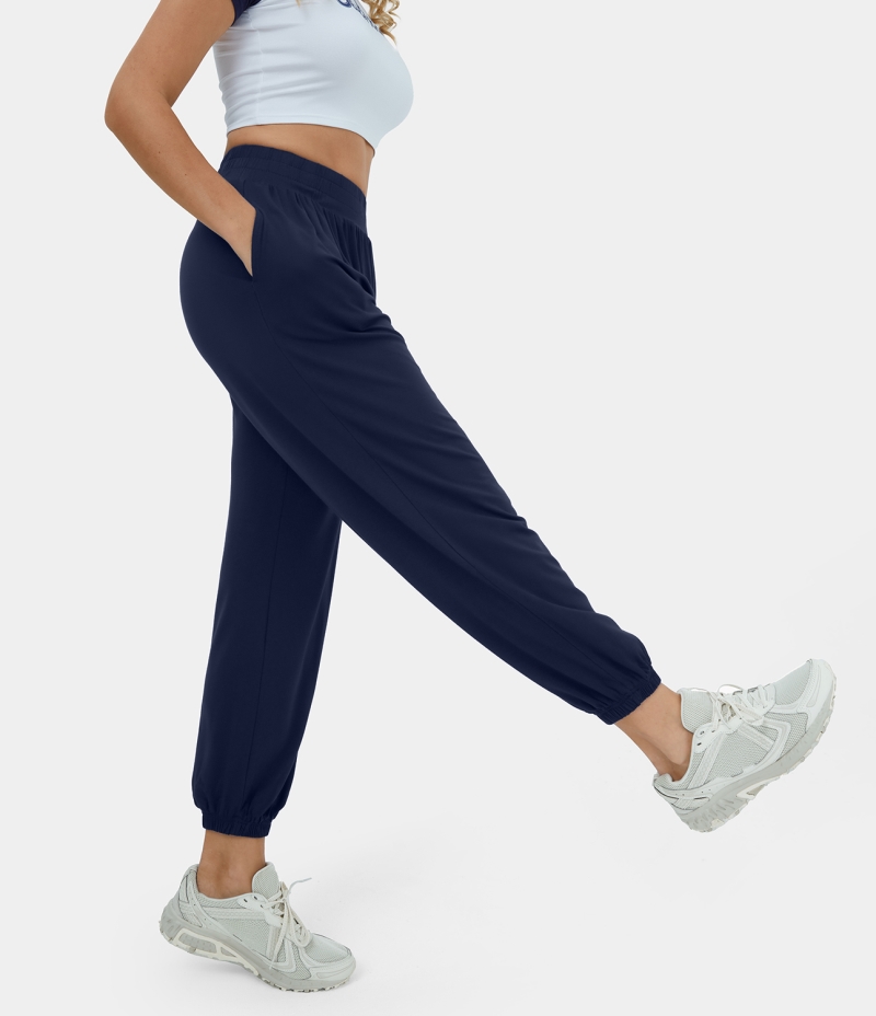 Halara High Waisted Elastic Waistband Draped Side Pocket Casual Women's Jogger Maritime Blue | 618497-PRW