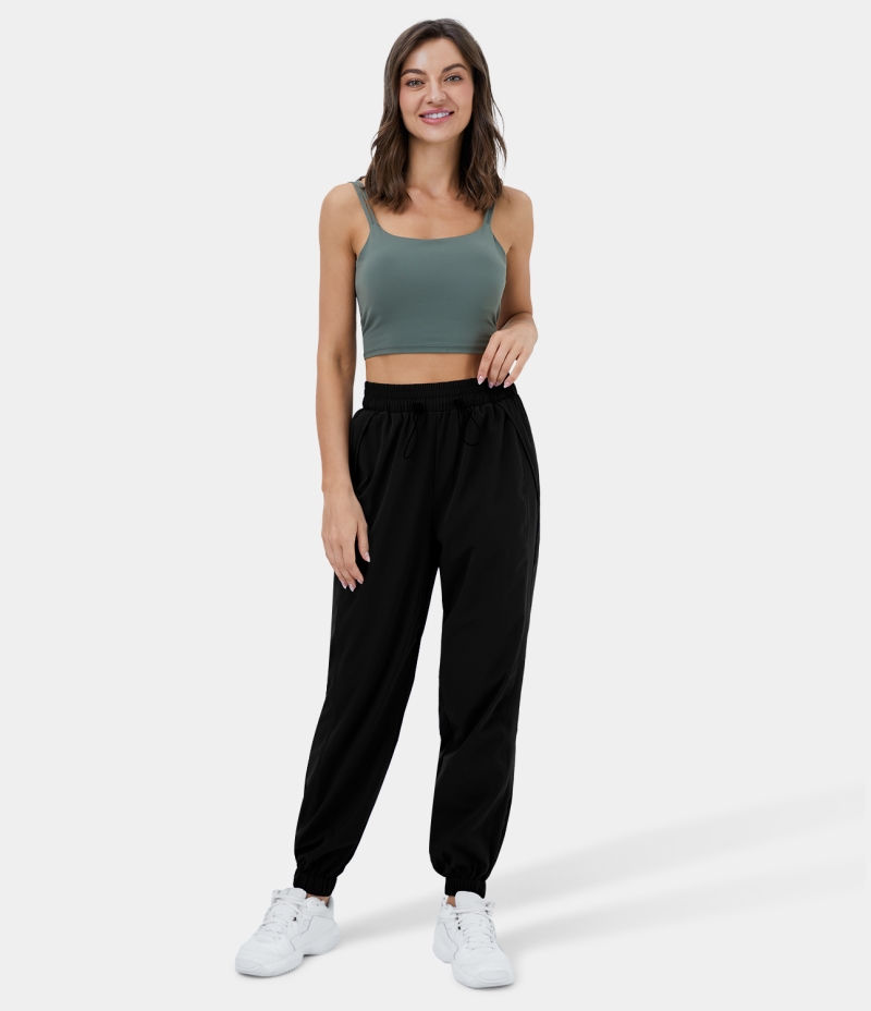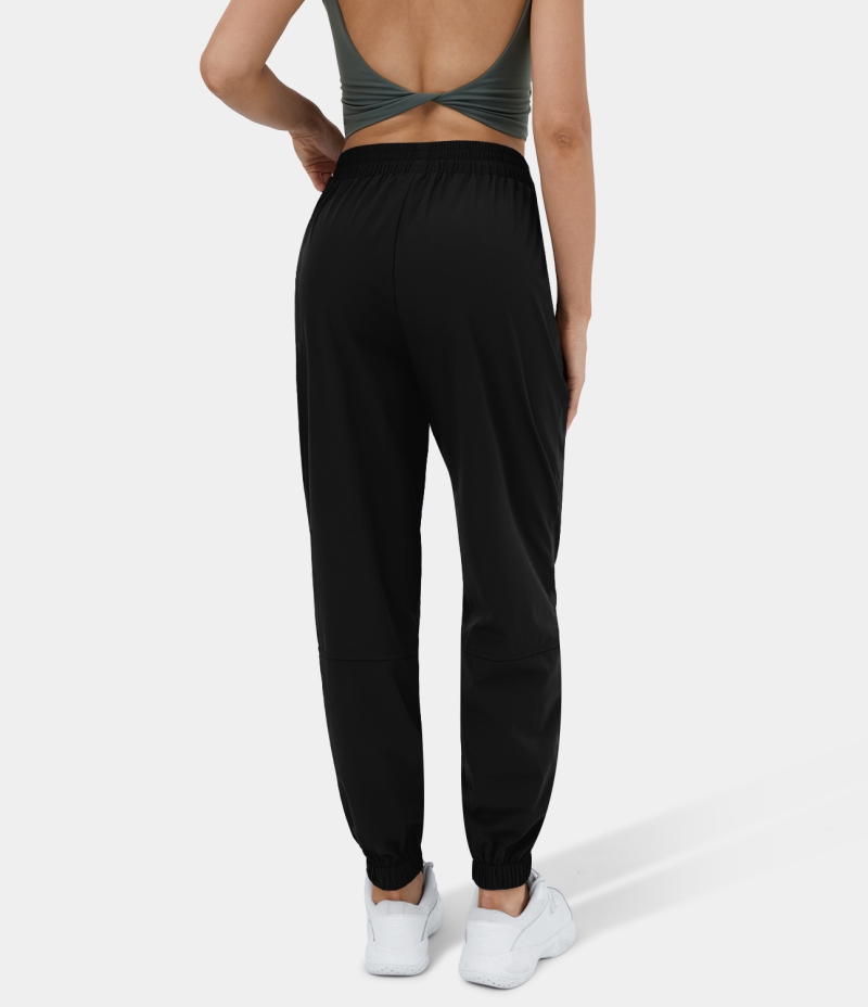 Halara High Waisted Elastic Waistband Drawstring Side Pocket Casual Women's Jogger Black | 501947-QNR