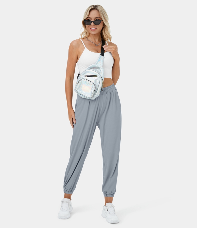 :: Halara High Waisted Elastic Waistband Drawstring Side Pocket Dance Women's Jogger Blue Fog | 418907-VQI