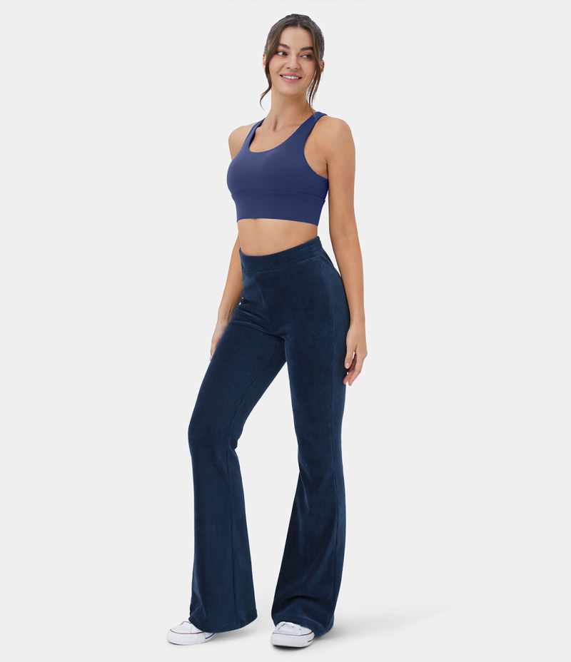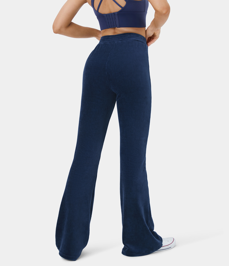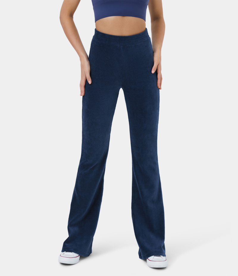 Halara High Waisted Elastic Waistband Flare Casual Corduroy Women's Pants Dark Blue | 592160-NJD