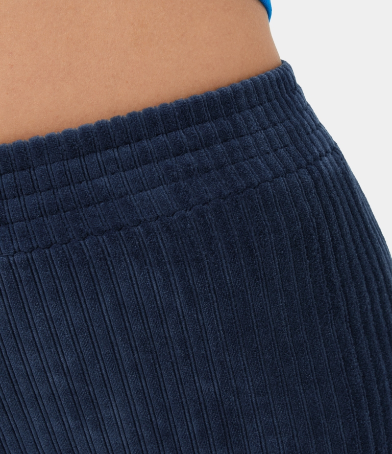 :: Halara High Waisted Elastic Waistband Flare Casual Corduroy Women's Pants Dark Blue | 592160-NJD