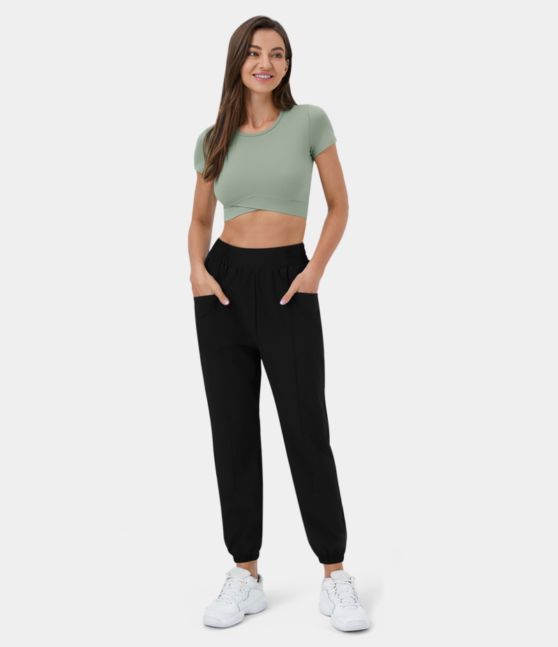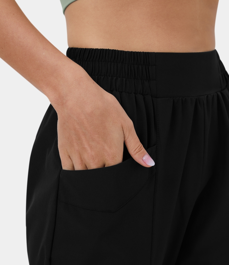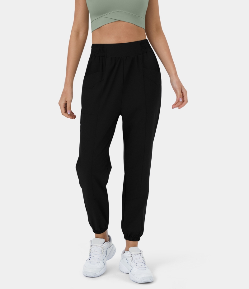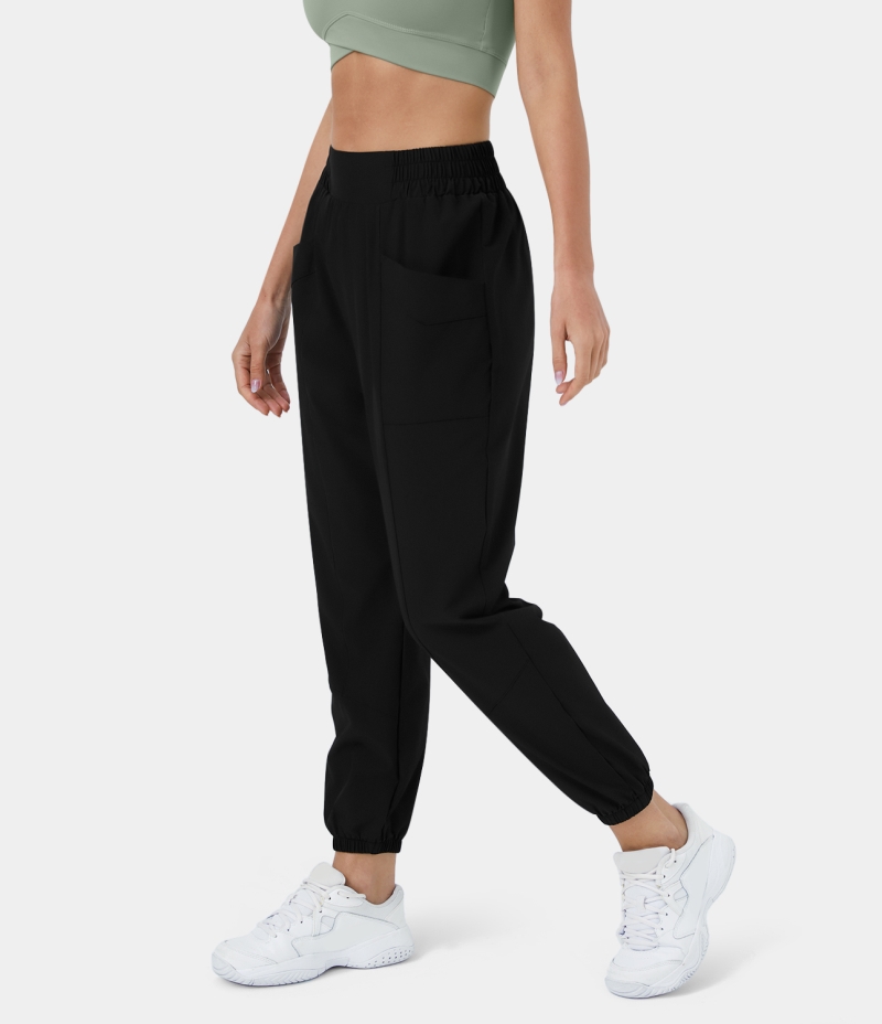 :: Halara High Waisted Elastic Waistband Side Pocket Plain Casual Women's Jogger Black | 602487-OXN
