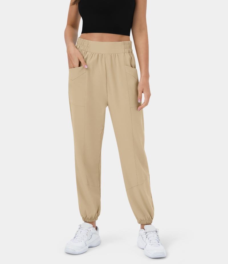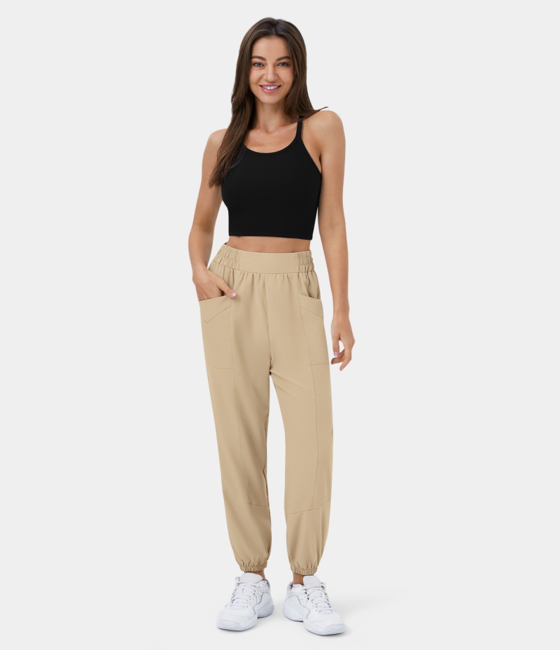 :: Halara High Waisted Elastic Waistband Side Pocket Plain Casual Women's Jogger Pebble | 961342-FPV