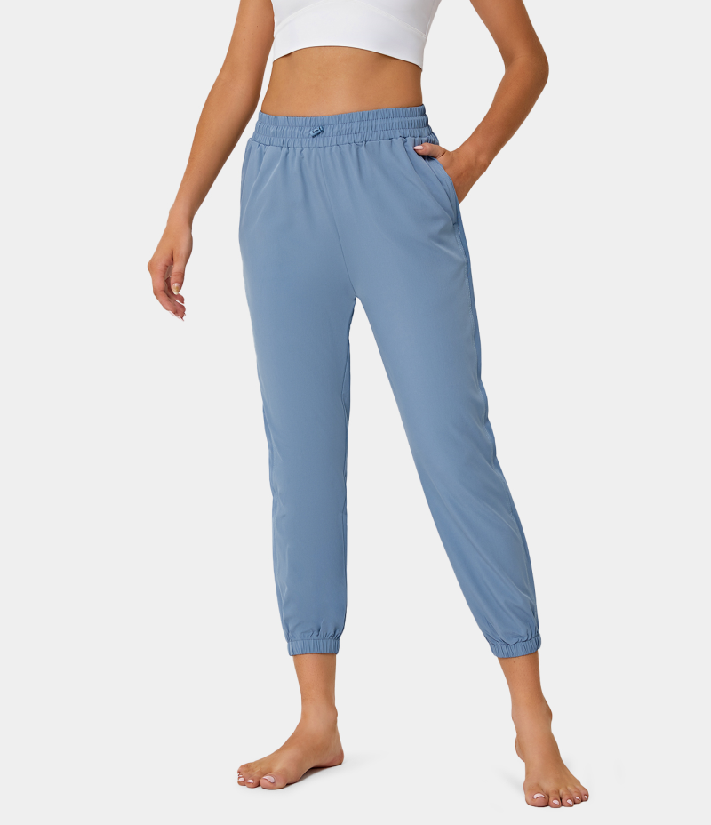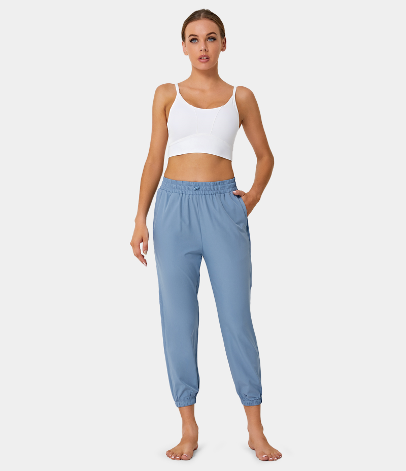 :: Halara High Waisted Elastic Waistband Side Pocket Plain Loose Women's Jogger Powder Blue | 632105-BIE