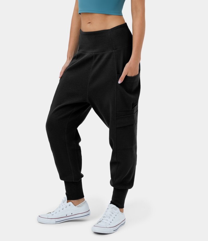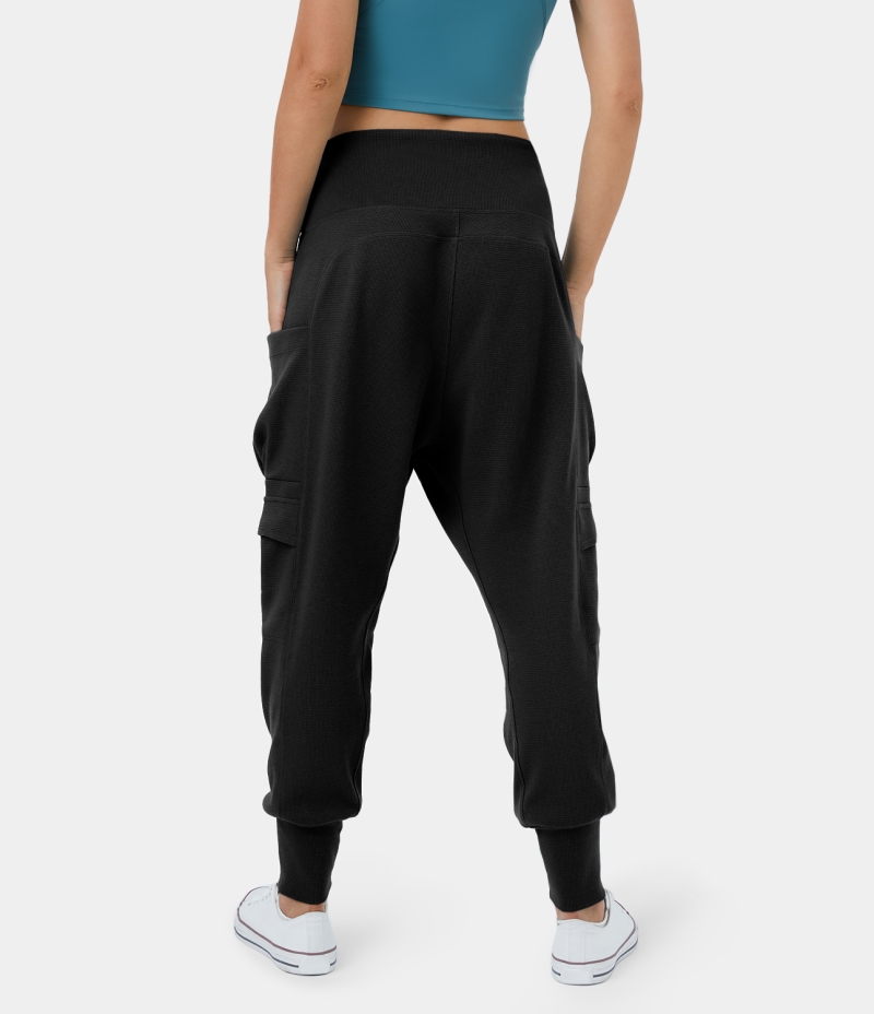 :: Halara High Waisted Foldover Side Pocket Waffle Harem Dance Cargo Women's Jogger Black | 381452-MRL