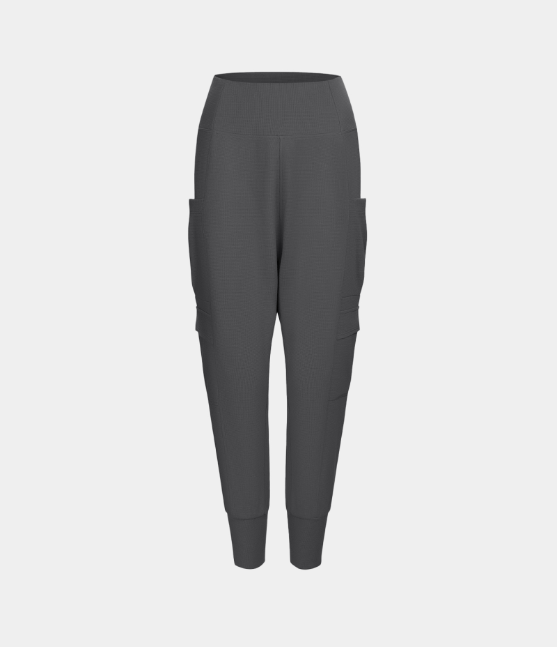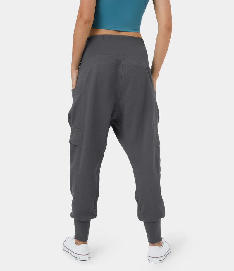 :: Halara High Waisted Foldover Side Pocket Waffle Harem Dance Cargo Women's Jogger Dark Shadow | 705416-KAG