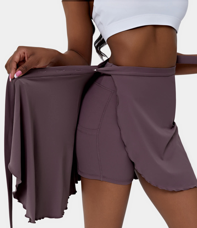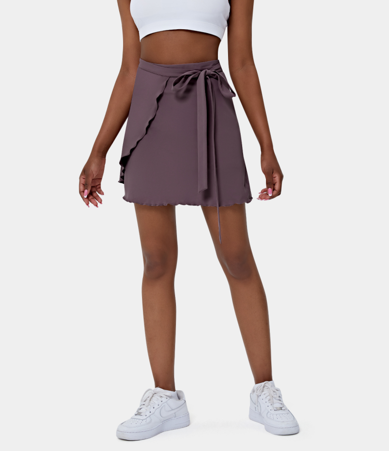 :: Halara High Waisted Irregular Ruffled Tie Front Wrapped Women's Skirts Stardust Mauve | 486729-XSD