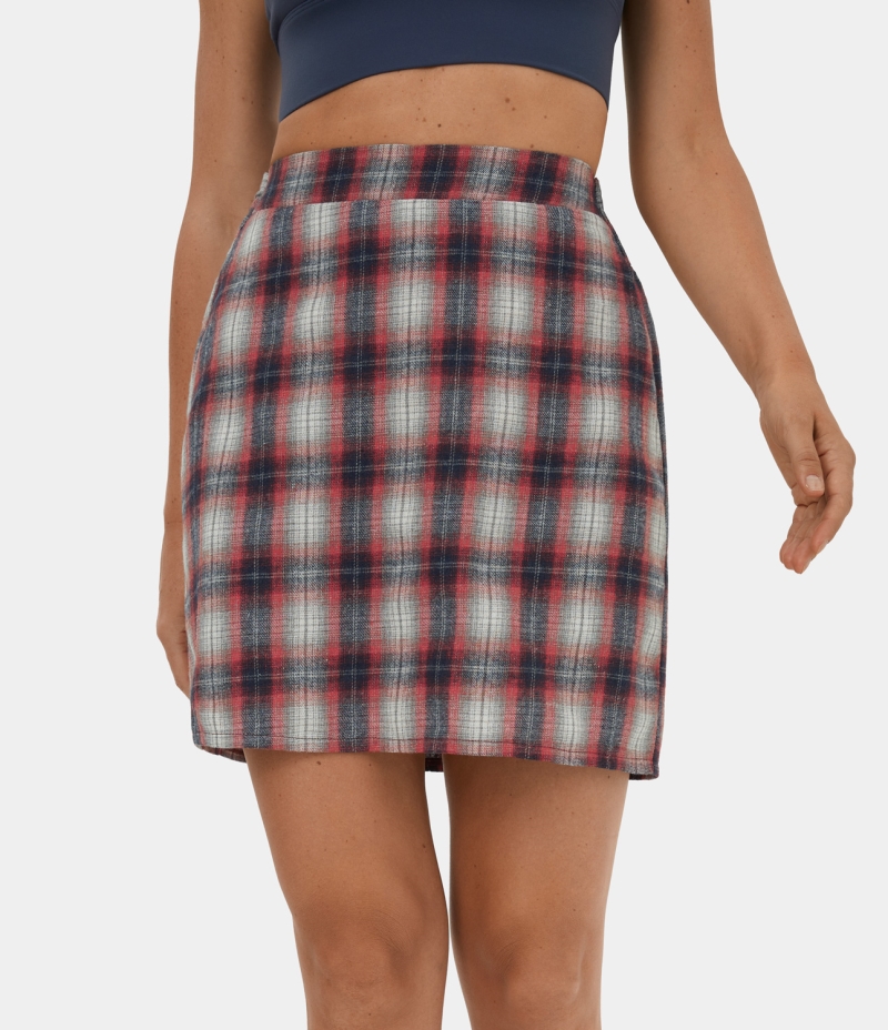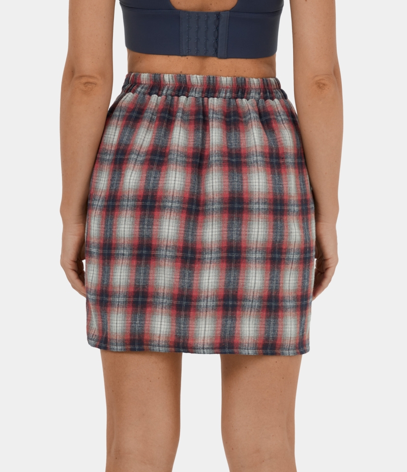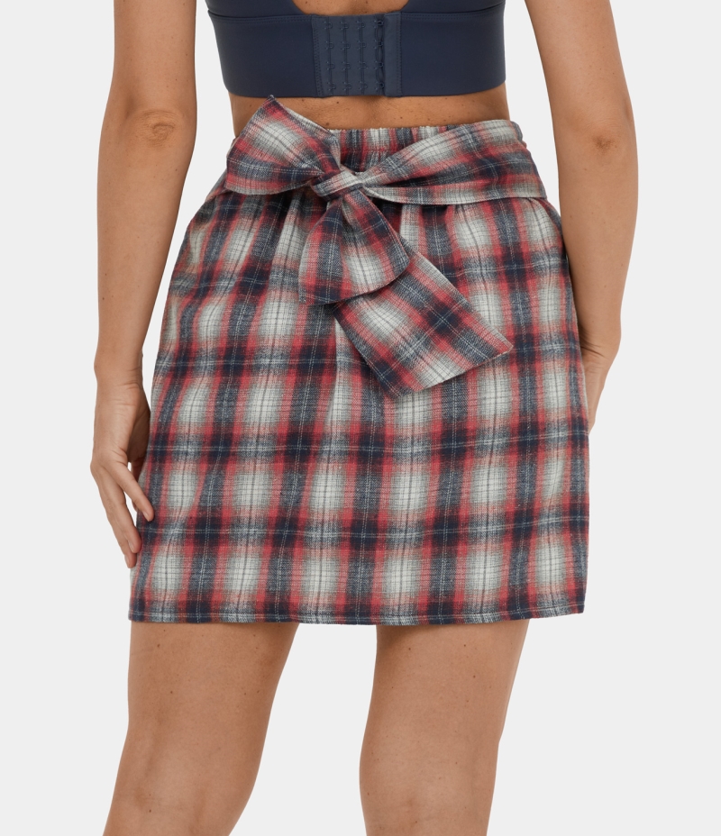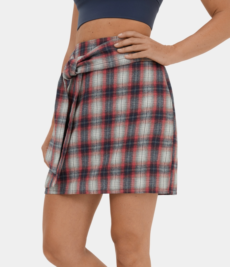 Halara High Waisted Lace Up Plaid Mini Casual Women's Skirts Red Plaid | 632814-PKN