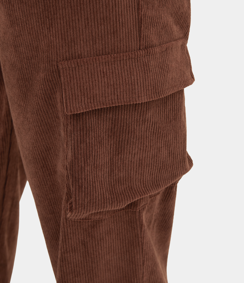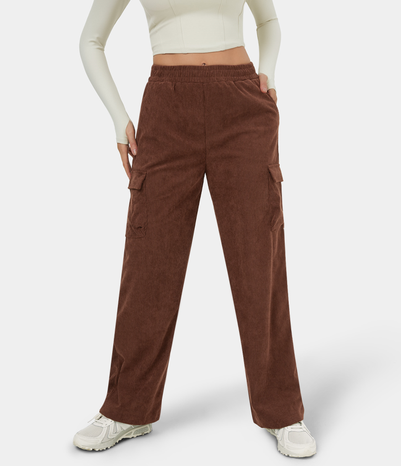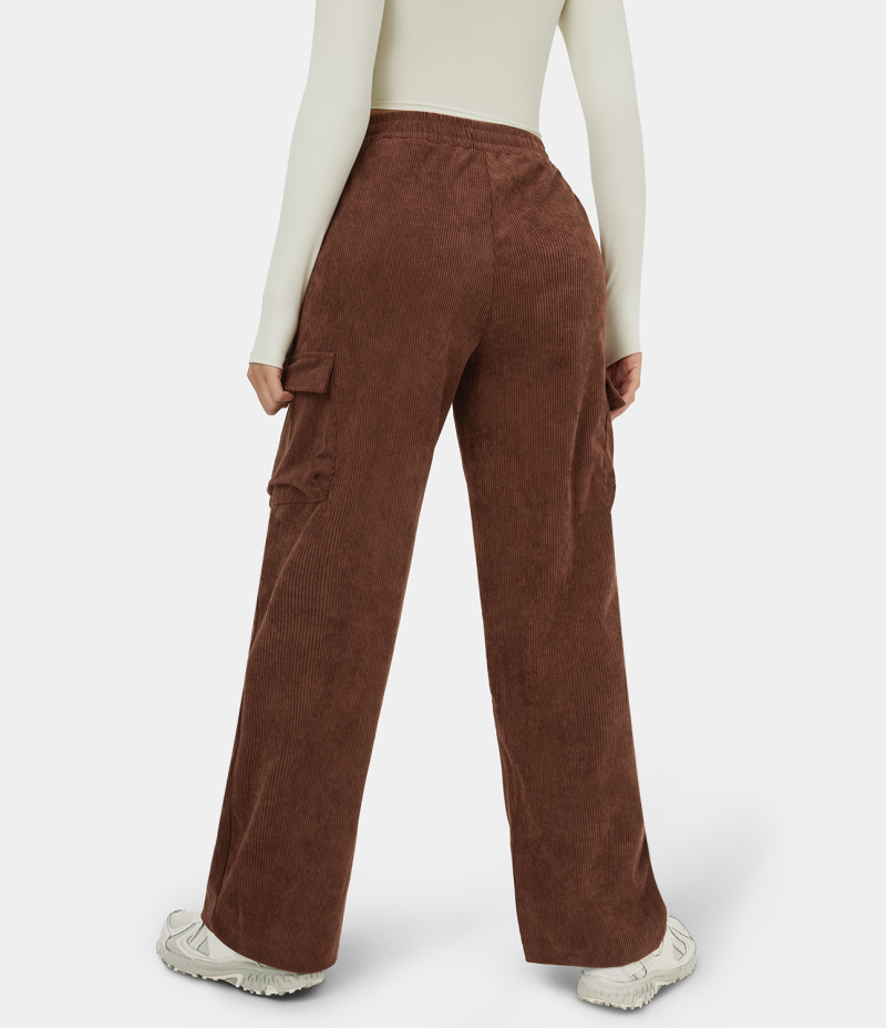 :: Halara High Waisted Multiple Pockets Wide Leg Corduroy Casual Women's Pants Chocolate Fondant | 748063-HDV